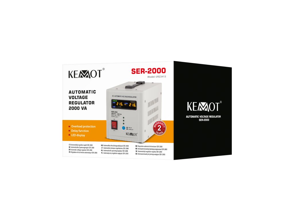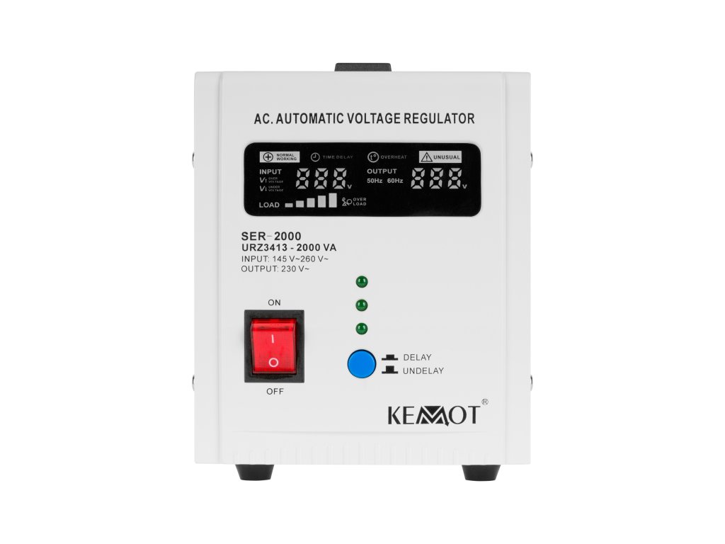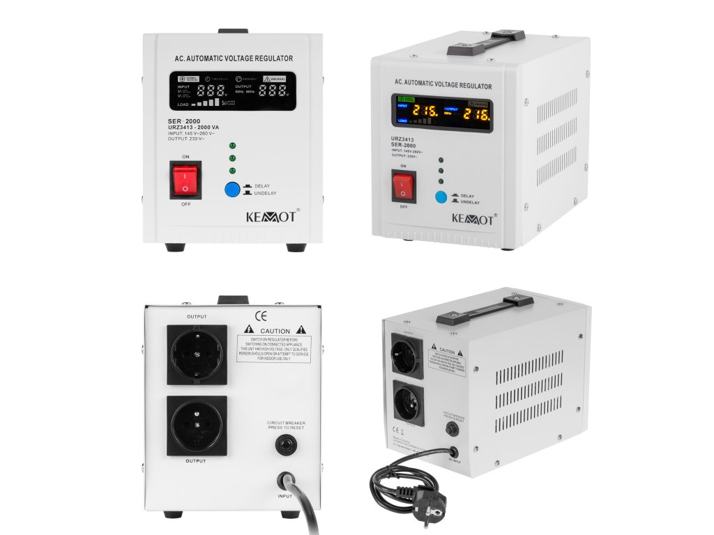 Az adatvesztés, a hirtelen leállás, a sérülés vagy a berendezés meghibásodása csak néhány az instabil feszültségek következményei közül. A Kemot SER-2000 a hálózati terheléstől és a kimeneti feszültség ingadozásától függetlenül 230 V ±5%-on tartja azt, lehetővé téve minden eszköz hatékony működését, beleértve azokat is, amelyek érzékenyek a hálózati feszültség minőségére. A szabályozás automatikus, ami nagy kimeneti feszültségpontosságot biztosít. A SER-2000 otthoni és irodai környezetben egyaránt alkalmazásra talál, ideálisan alkalmas audio/video berendezésekhez vagy számítógépekhez.