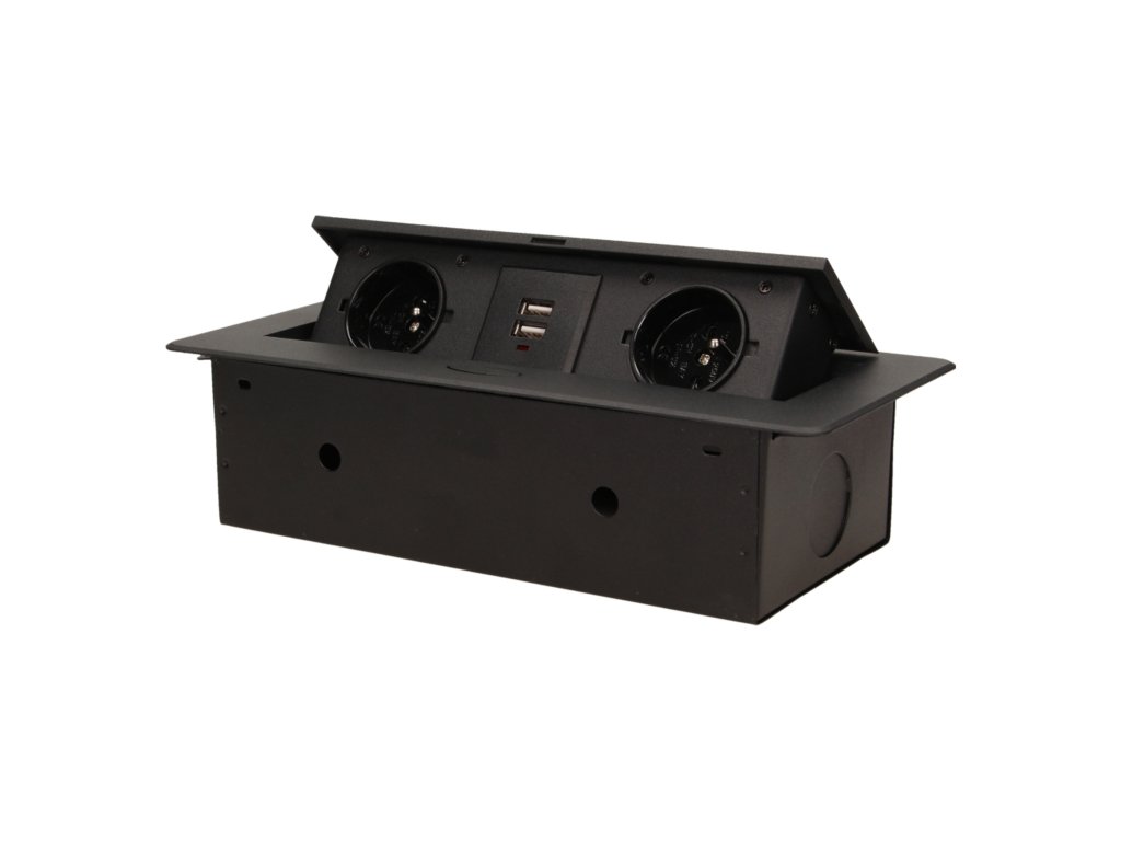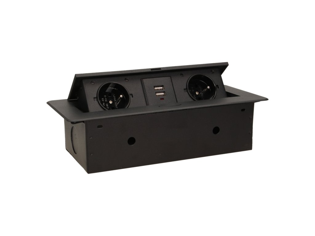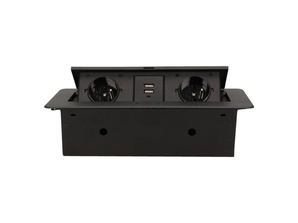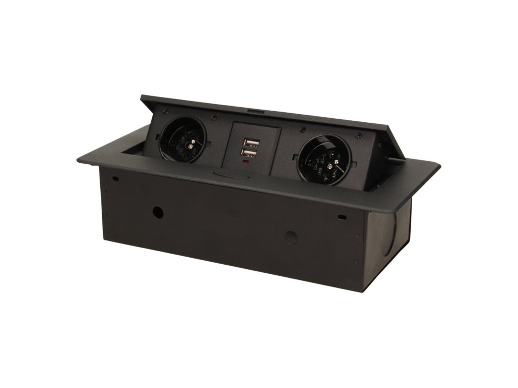 Két elektromos aljzatból álló készlet beépített USB-töltővel a kihúzható felső fedélben. Íróasztalokba, asztallapokba és asztalokba történő belső beépítésre tervezve, függőleges és vízszintes helyzetben egyaránt, hozzáférést biztosítva az elektromos csatlakozóaljzatokhoz.Műszaki leírás