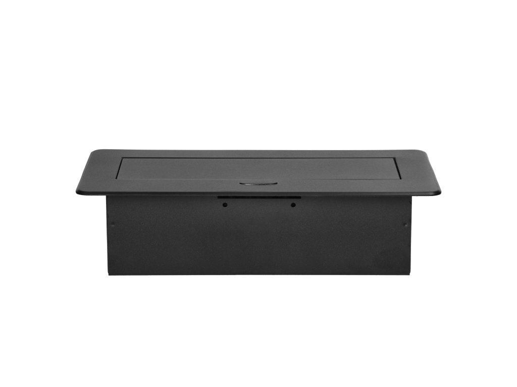 Afekete, porszórt bevonatú fiók jól illeszkedik a legtöbb bútor felületéhez, és színben a legtöbb elrendezéshez illeszkedik . Akifinomult forma a bútorba épített fiók használatát stílusos alternatívává teszi a hagyományos hosszabbítók vagy hálózati szalagok helyett, és hatékonyan elkerüli a kábelek összegabalyodását.