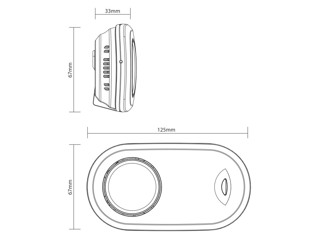 Méretek: 125 mm (szélesség) x 67 mm (magasság) x 33 mm (mélység)