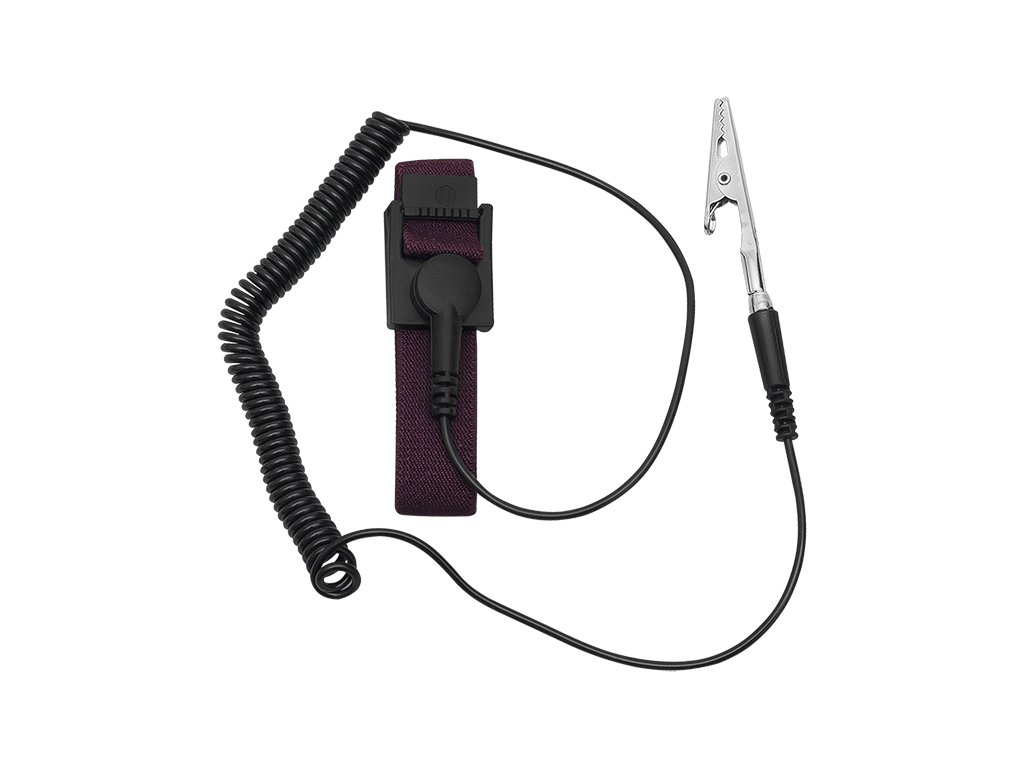 Kiváló minőségű karkötő 1,5 méter hosszú, rugalmas földelő kábellel. A karkötő krokodil csatlakozóval rendelkezik.