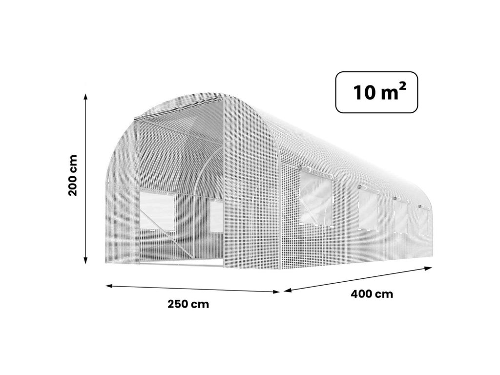 - méretek: 400 cm x 250 cm x 200 cm (10 m2)