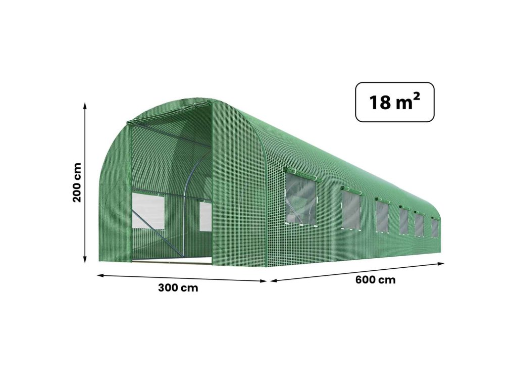 - rozmery: 600 cm x 300 cm x 200 cm (18 m2)