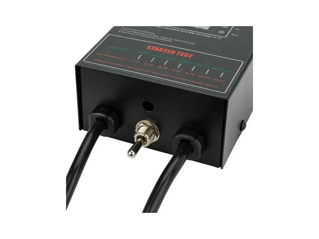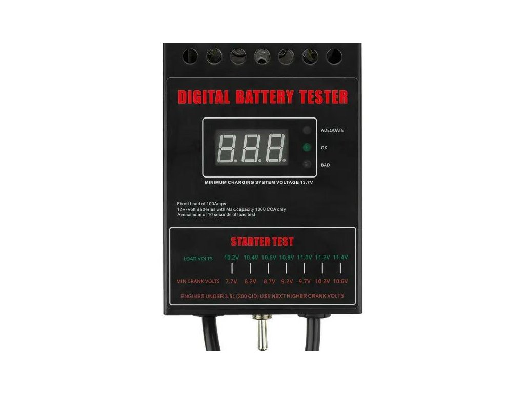 A tesztelő 100 A áramerősséggel terheli az akkumulátort, szimulálva a valós indítási körülményeket, ami lehetővé teszi a teljesítményének megbízható értékelését. A beépített digitális feszültségmérő ±0,05 V pontossággal lehetővé teszi a paraméterek gyors leolvasását, míg az átlátható skála tájékoztat a akkumulátor állapotáról: „ADEQUATE”, „OK” vagy „BAD”.