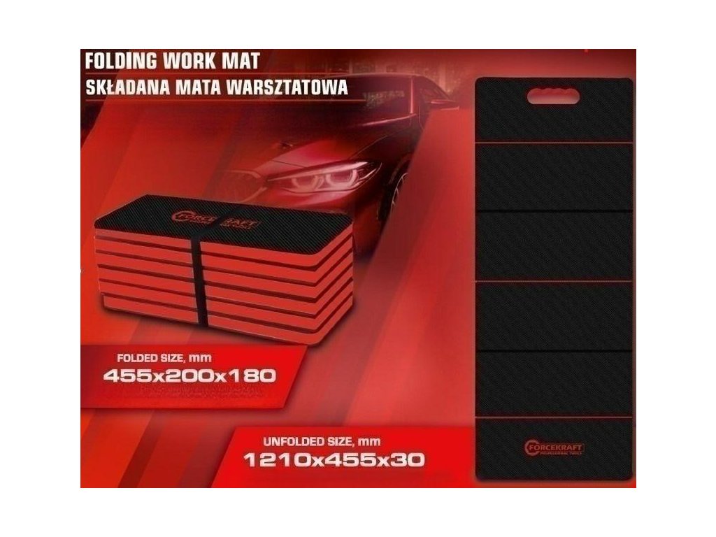 A Forcekraft összecsukható műhelyszőnyeg egy sokoldalú eszköz mindenkinek, aki autókkal, kertben, garázsban vagy háztartási munkák során dolgozik. Magas olaj-, benzin- és vízállóságának köszönhetően a szőnyeg megfelelő intenzív műhelyhasználatra, valamint sürgős javításokra a szabadban is.