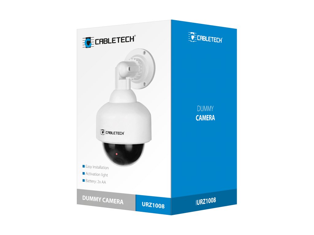 Szeretné növelni telke biztonságát A LED DK-10 Cabletech figyelmeztető fénnyel ellátott forgó kamera makett tökéletesen utánozza a valódi kamerát. Két AA elemmel való táplálásának köszönhetően akár 30 napos működést biztosít. Kompakt méretei és súlya miatt a telepítése egyszerű és hatékony.