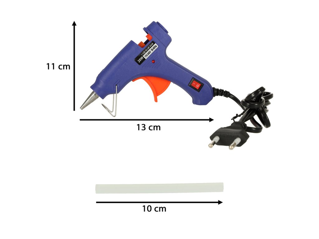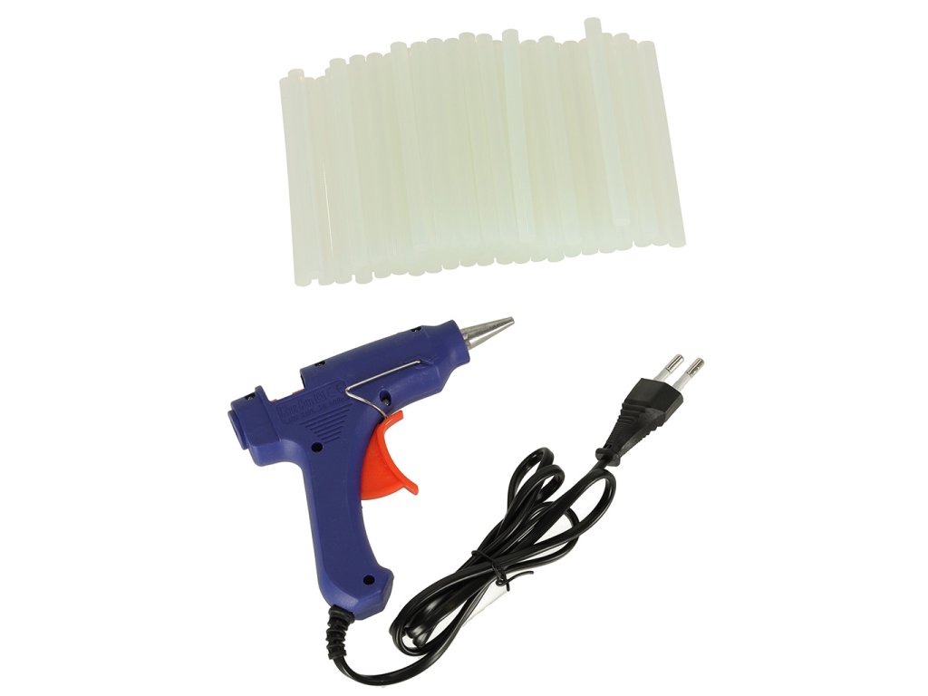 A ragasztótartály átmérője a tipikus 7 mm-es, amit minden boltban talál, így szükség esetén azonnal pótolhatja a készletet. A készlet tartalmaz ragasztópálcikákat az első munkákhoz.