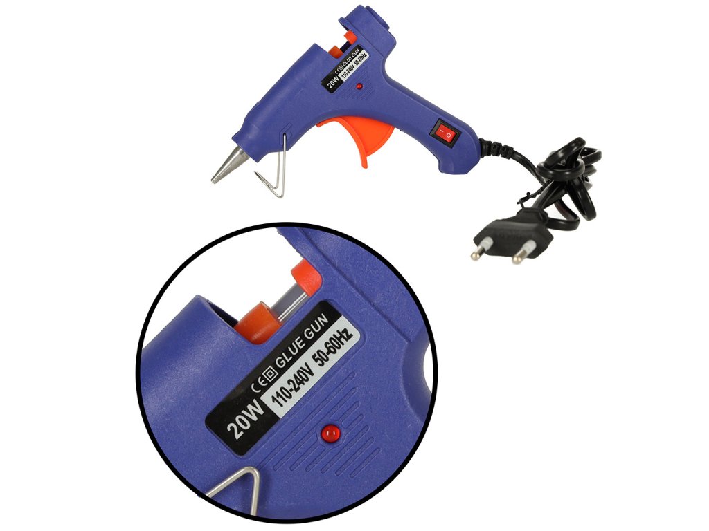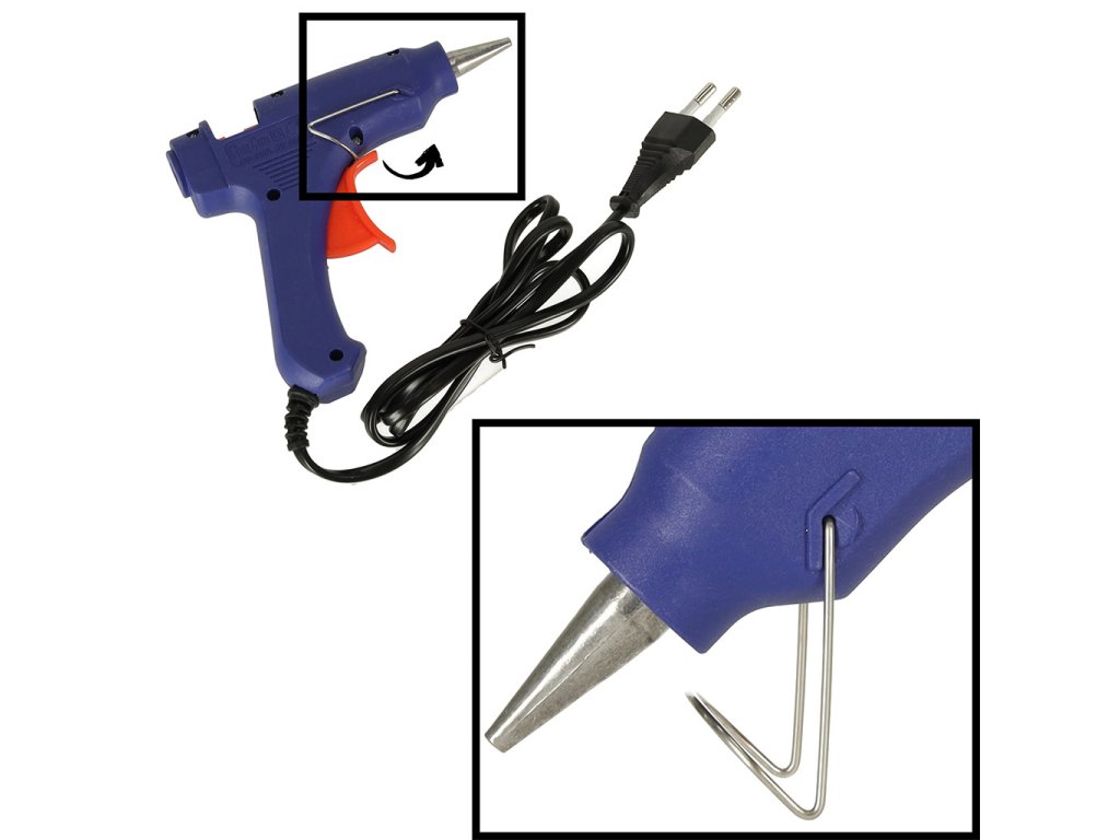 A ragasztópisztoly hihetetlenül könnyen használható. Csak dugja be a ragasztópálcát a hátoldalon lévő lyukba, dugja be, és várja meg, amíg felmelegszik. A pisztoly hálózati áramellátású, így ez eltart egy darabig! Amint elérte a magas hőmérsékletet, csak húzd meg a ravaszt, és a fúvókából forró ragasztó kezd el szivárogni.