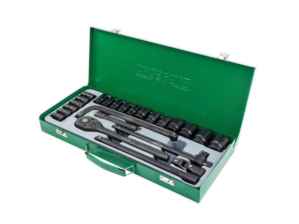 1/2" 24 el. (6-szög)ideális választás mindenkinek, aki értékeli a megbízhatóságot, tartósságot és a munkavégzés kényelmét. Tartalmazza a nagy menetes kapcsolatok összeszerelésére és szétszerelésére tervezett szerszámok teljes készletét — szakmai műhelyekben és otthoni garázsokban egyaránt.A kiváló minőségű edzett acél hosszú élettartamot biztosít a szerszámoknak, valamint ellenáll a kopásnak és a deformációknak intenzív használat során.