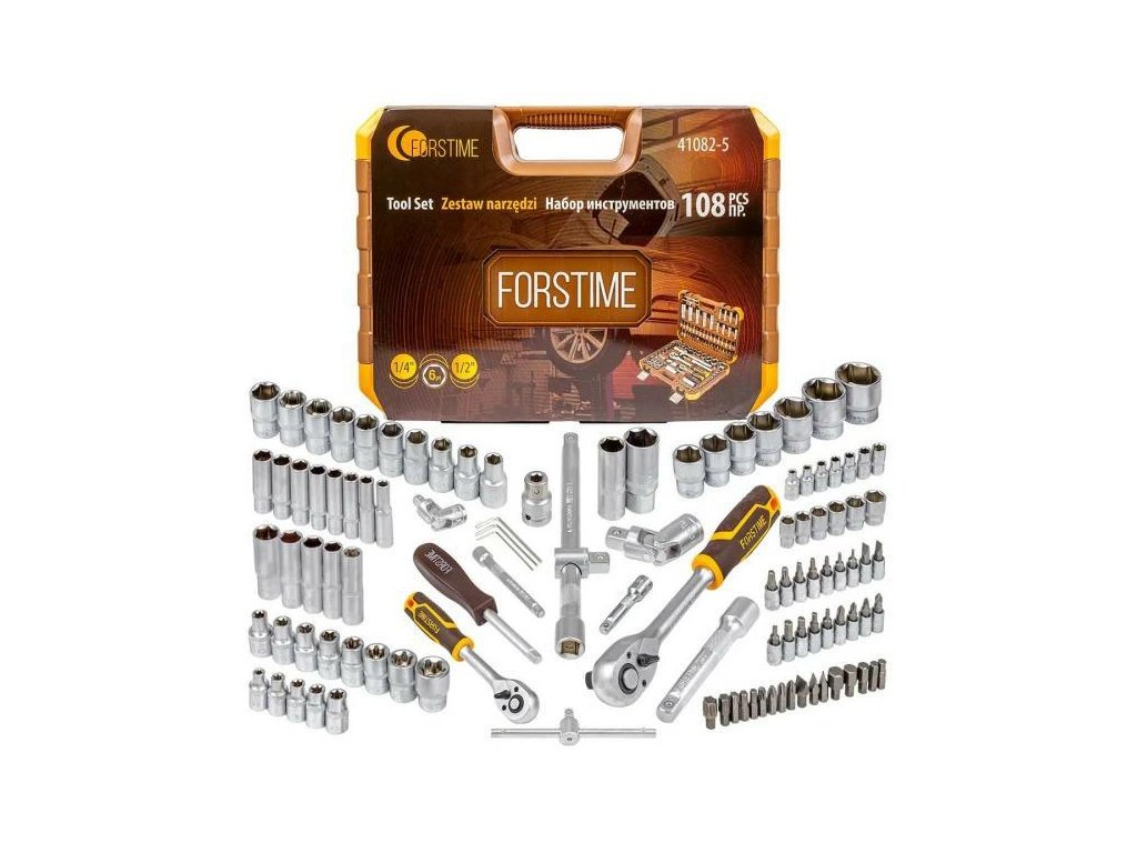 FORSTIME Nagy szerszámkészlet 108 ELEME 1/4" 1/2" hatszögletű kulcsok 4-32 mm