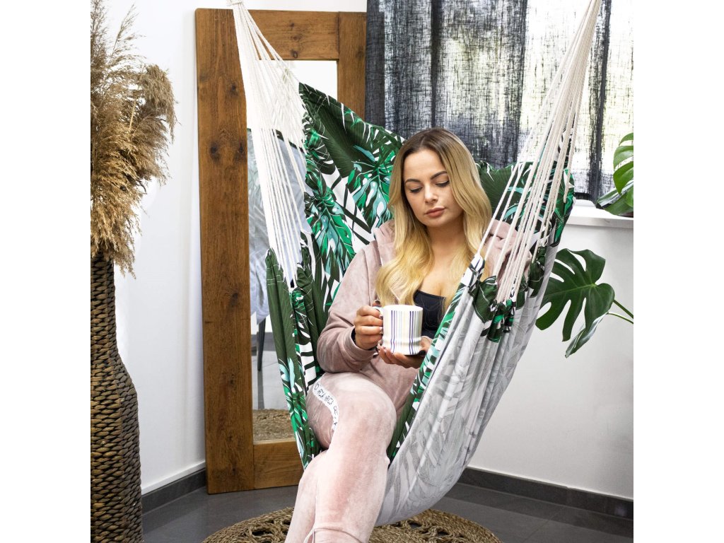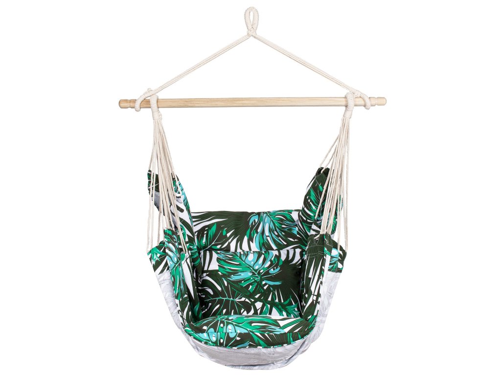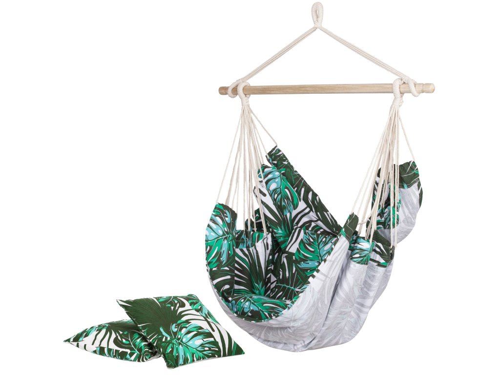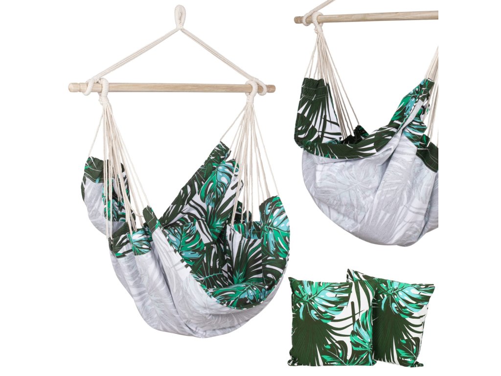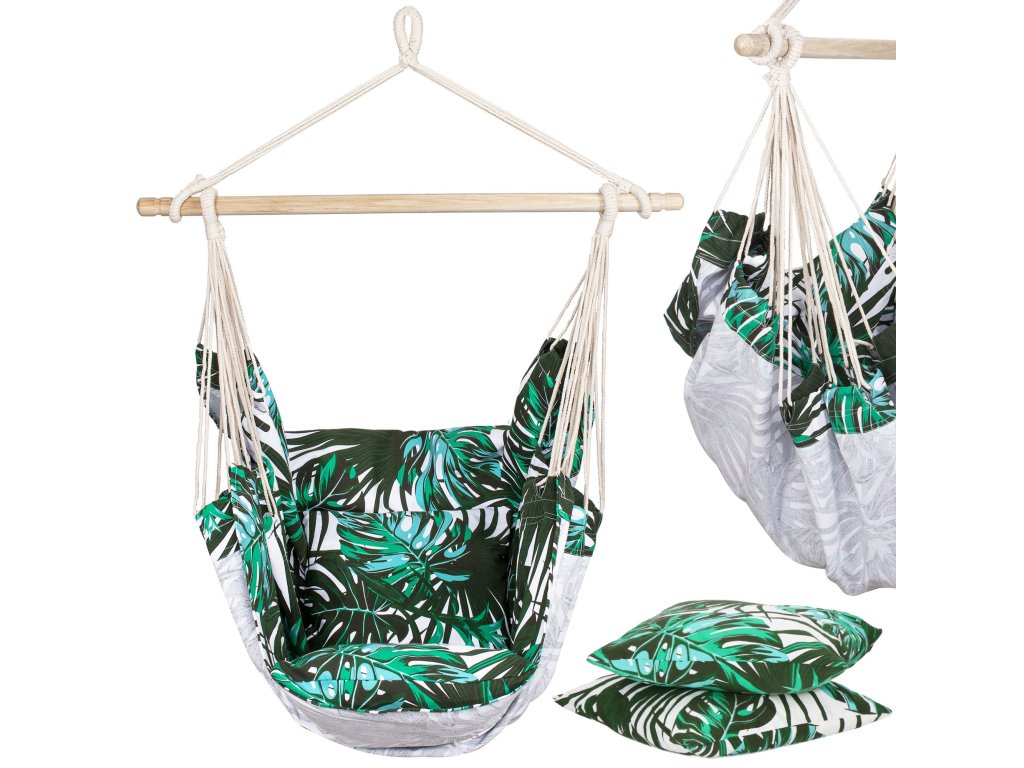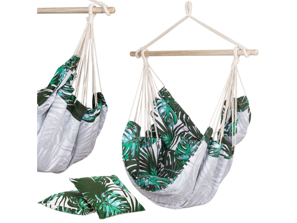 Függő hintaszék HM049ASpringos függőágy párnákkal tökéletes lesz az Ön számára, ha értékeli a minőséget és a gondos kivitelezést .Jól működik a meleg, napos napokon - egy fa árnyékában vagy a teraszon . Azegyik legnépszerűbb kerti kiegészítő, amely otthon vagy az erkélyen egyaránt jól működik.ha időnkéntszeret pihenni egy csésze meleg kávé vagy egy jó könyv mellett, akkor ez a szék az Öné. Szín: többszínű Anyag: 65% pamut + 35% poliészter Méretek: 130cm x 100cm Gerendahossz: 100cm Maximális felhasználói súly: 150kg A készlet tartalma: 2 párna Termékkód: HM049