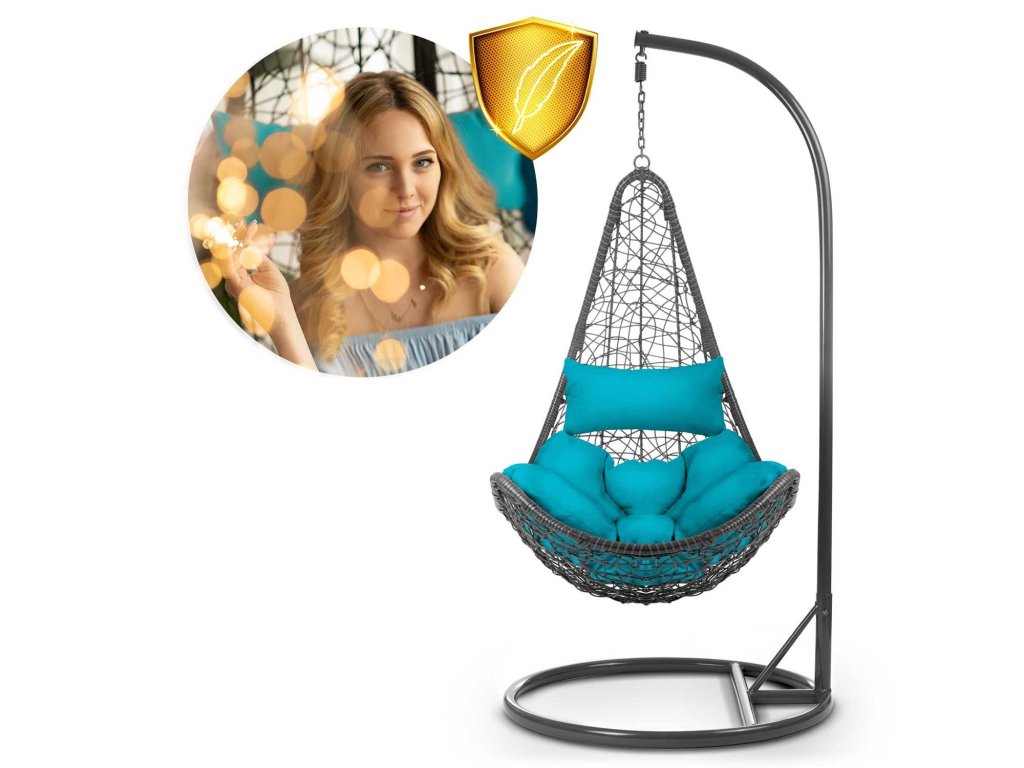 Függő kerti szék Cabana szürke + világoskék párnák Sofotel