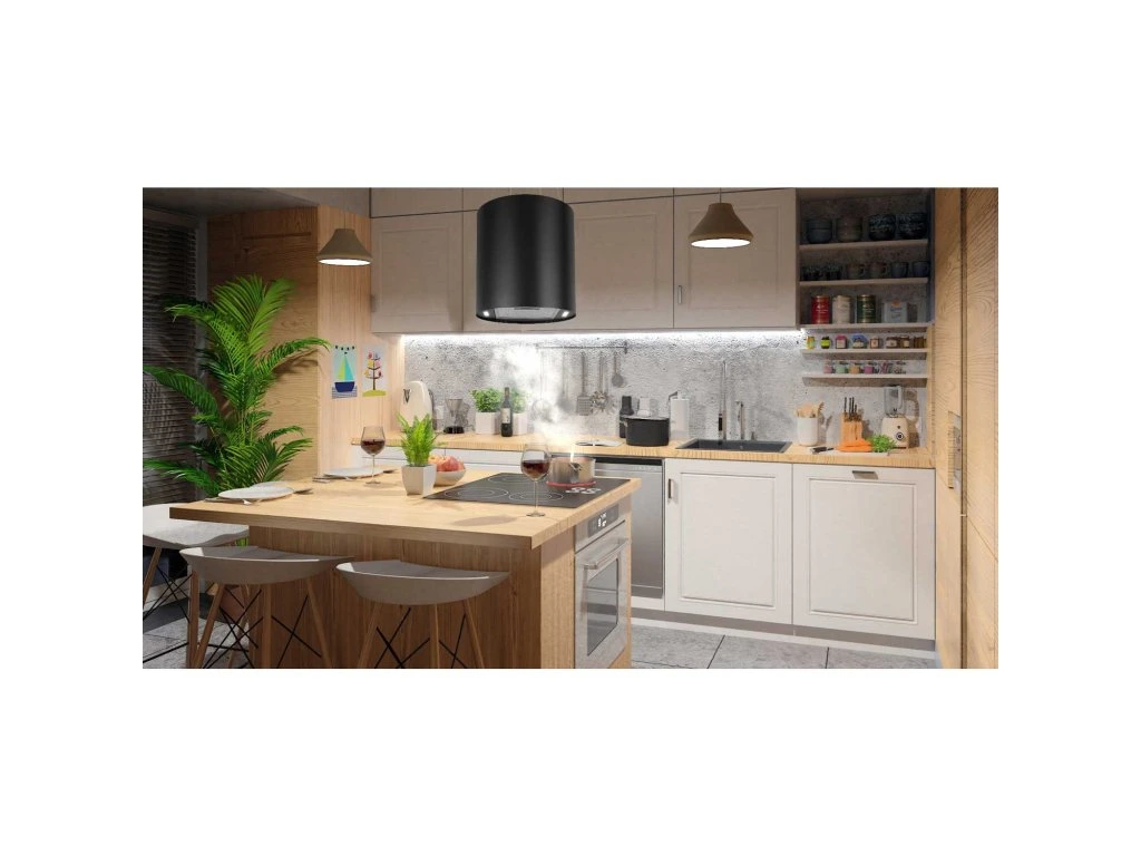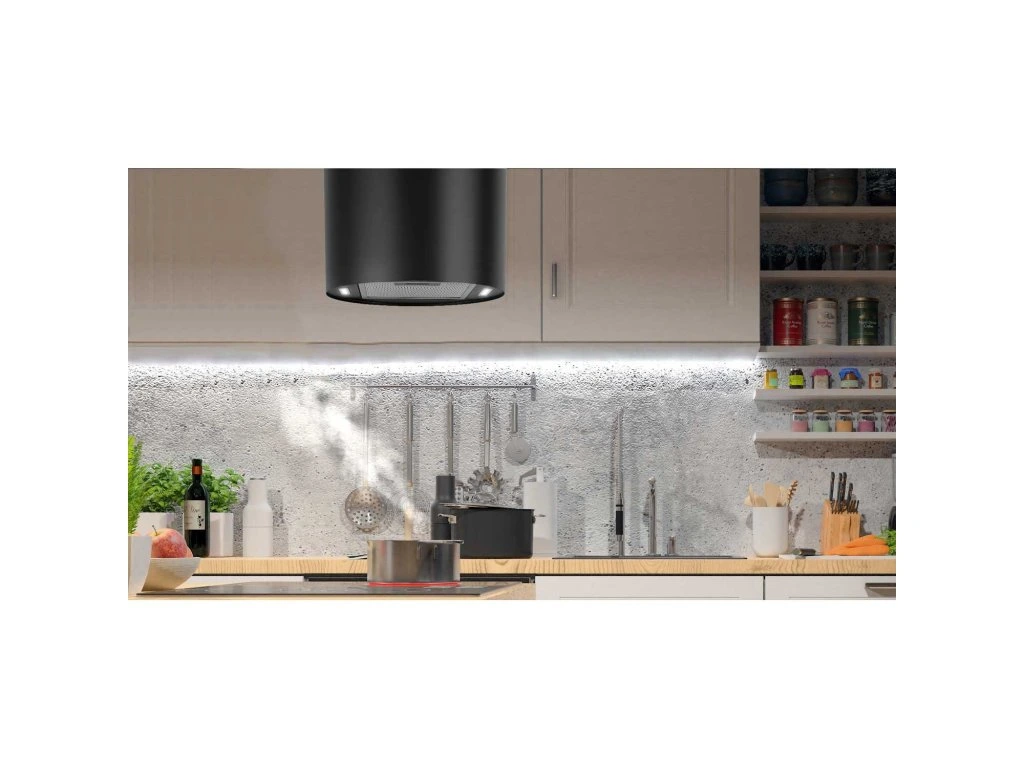 A bemutatott szigeti páraelszívó tökéletes megoldás azok számára, akik hatékony készüléket keresnek, amely stílust és eleganciát kölcsönöz a konyhának.