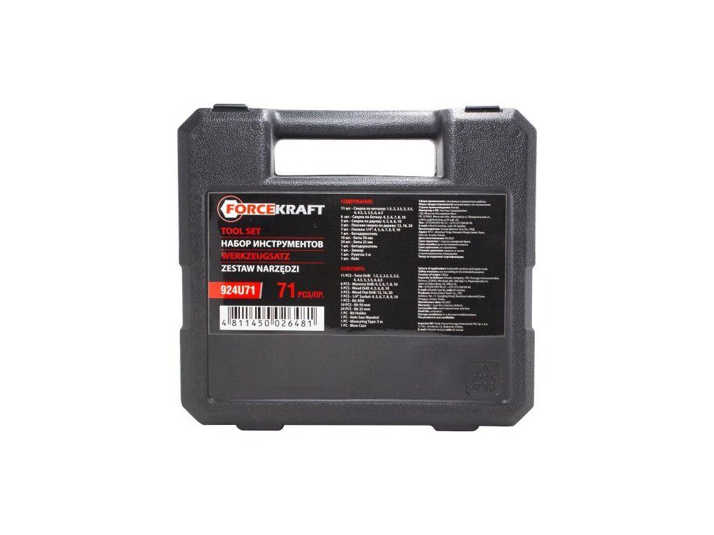 A FORCEKRAFT cég a fúrók, bitek, betétek készlete táskában magas minőségű acélból készült eszközöket tartalmaz.