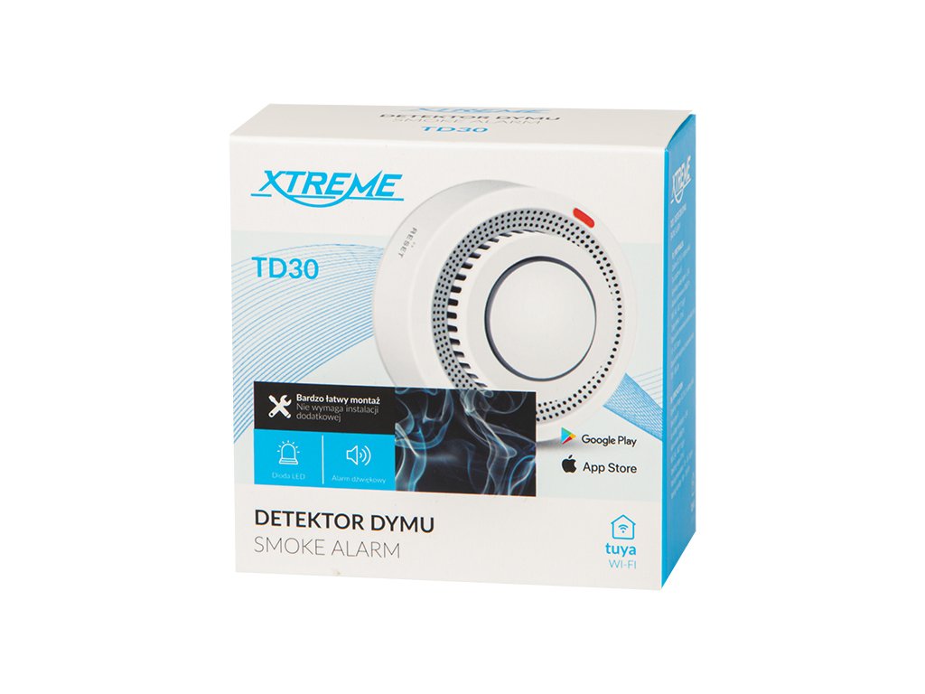 XTREME TD30 beltéri füstérzékelő a beépített Wi-Fi és a dedikált TUYA SMART LIFE alkalmazáson keresztül történő konfigurálási lehetőséggel.