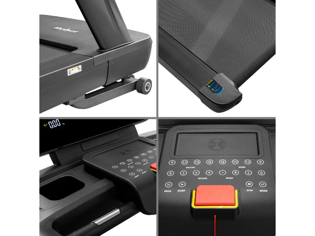 A futópad 2,5 mm vastagságú háromrétegű futószőnyeggel rendelkezik, amely ütéselnyelő rendszerrel kombinálva minimalizálja az ízületek terhelését és javítja a futás kényelmét. Az automatikus dőlésszögbeállítás 0-20% tartományban lehetővé teszi a dombos terep szimulálását, tovább növelve az edzés intenzitását. Az állandó 3 HP teljesítményű (maximális teljesítmény 4 HP) váltakozó áramú motor biztosítja a készülék zökkenőmentes működését akár 25 km/h maximális sebességnél is.