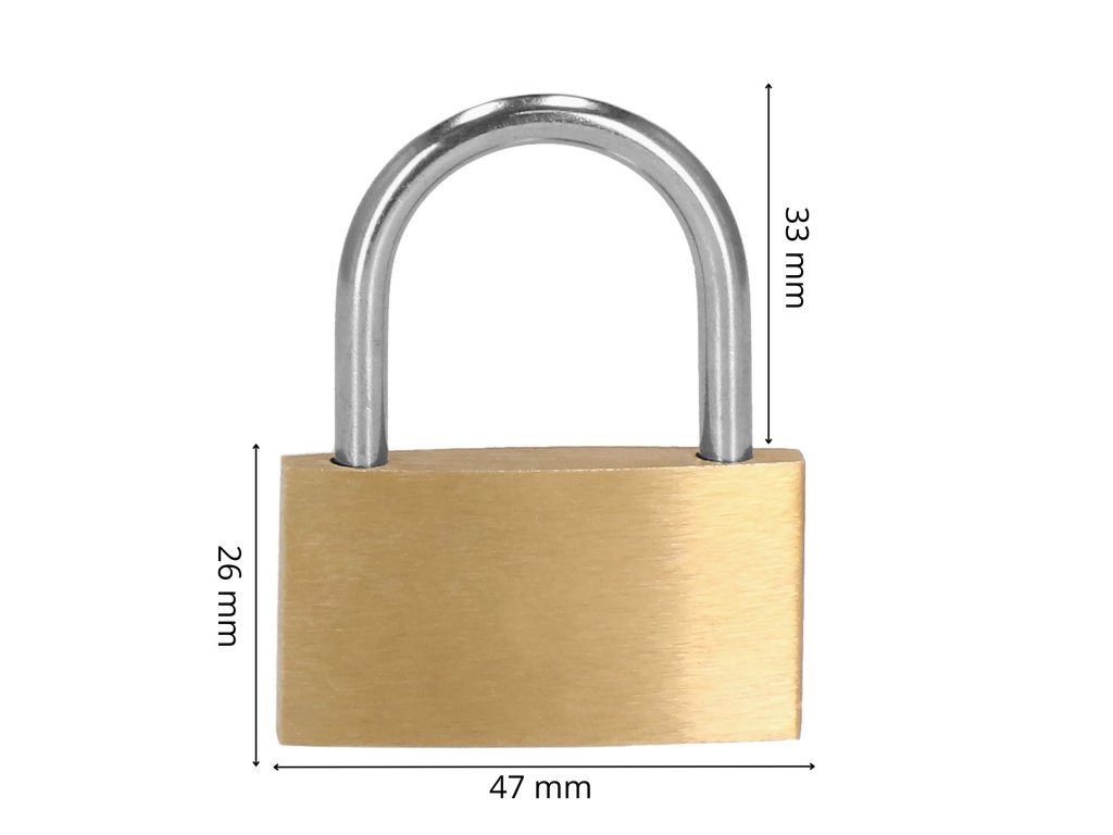 - Akasztós lakat méretei (zár nélkül): 26 mm x 47 mm x 13 mm
