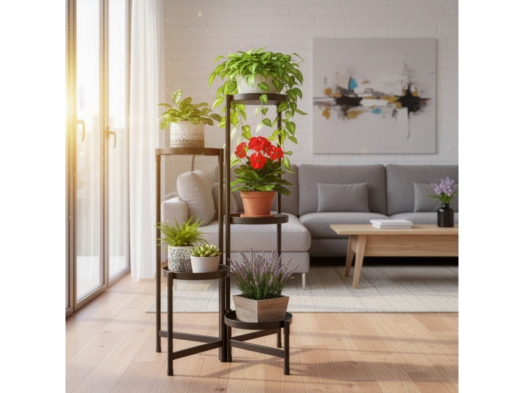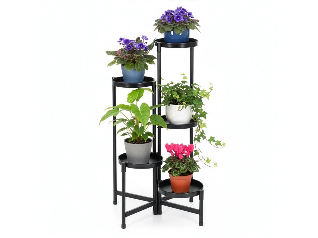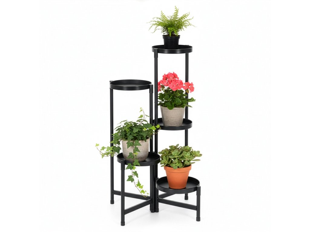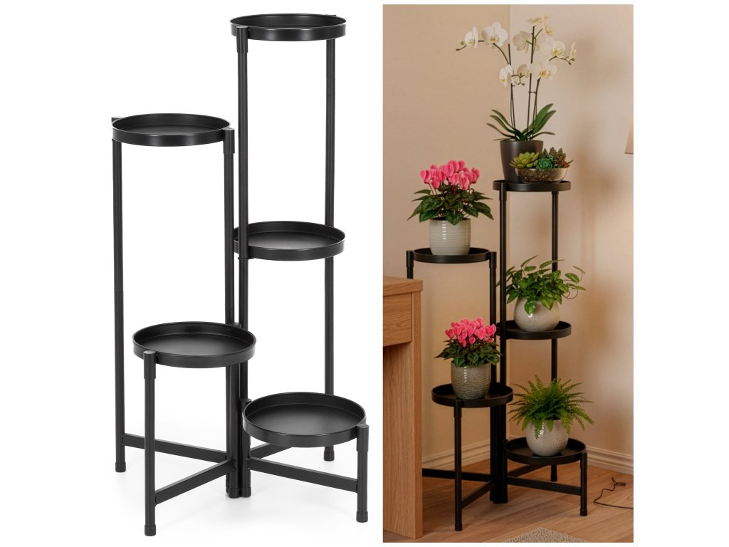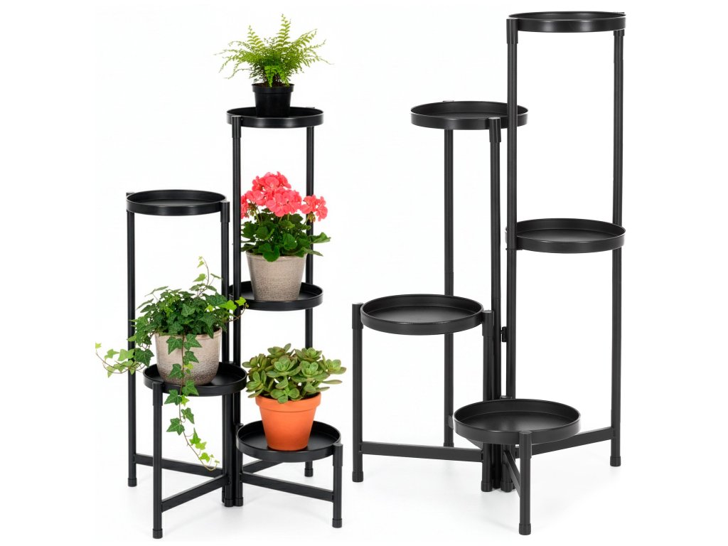 - Fém összecsukható virágtartó csavarok használata nélkül – az elemek és a polcok egyszerűen egymásra fedve vannak összeszerelve