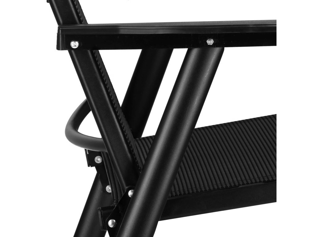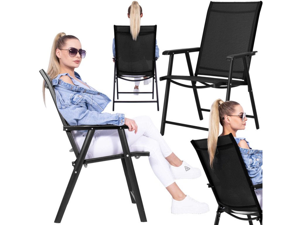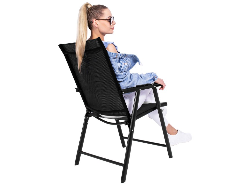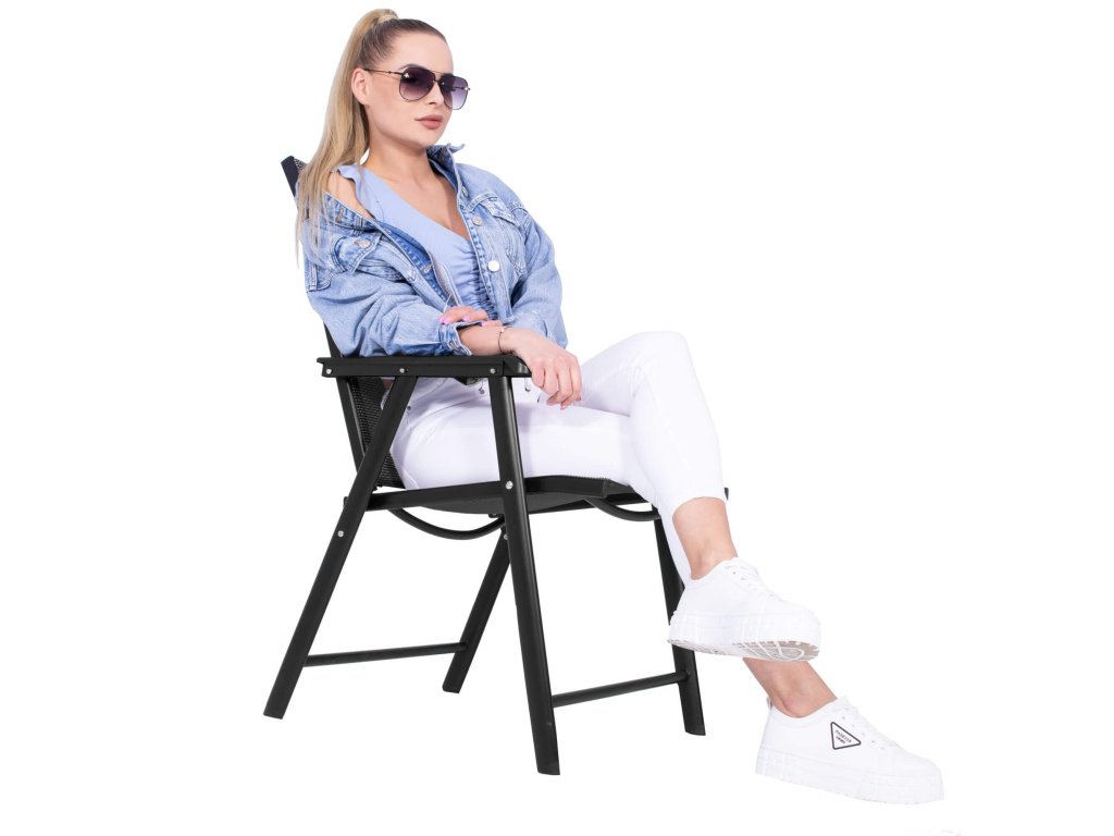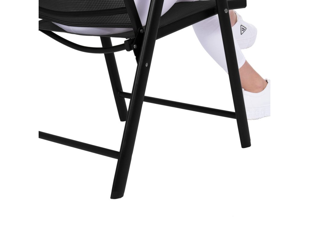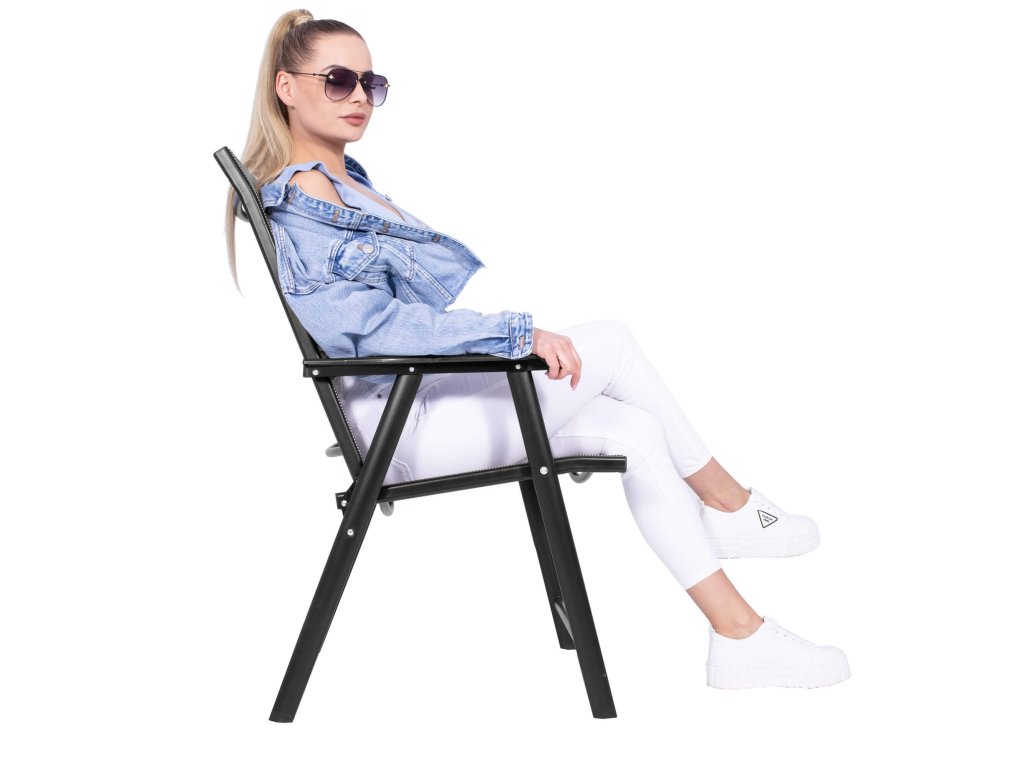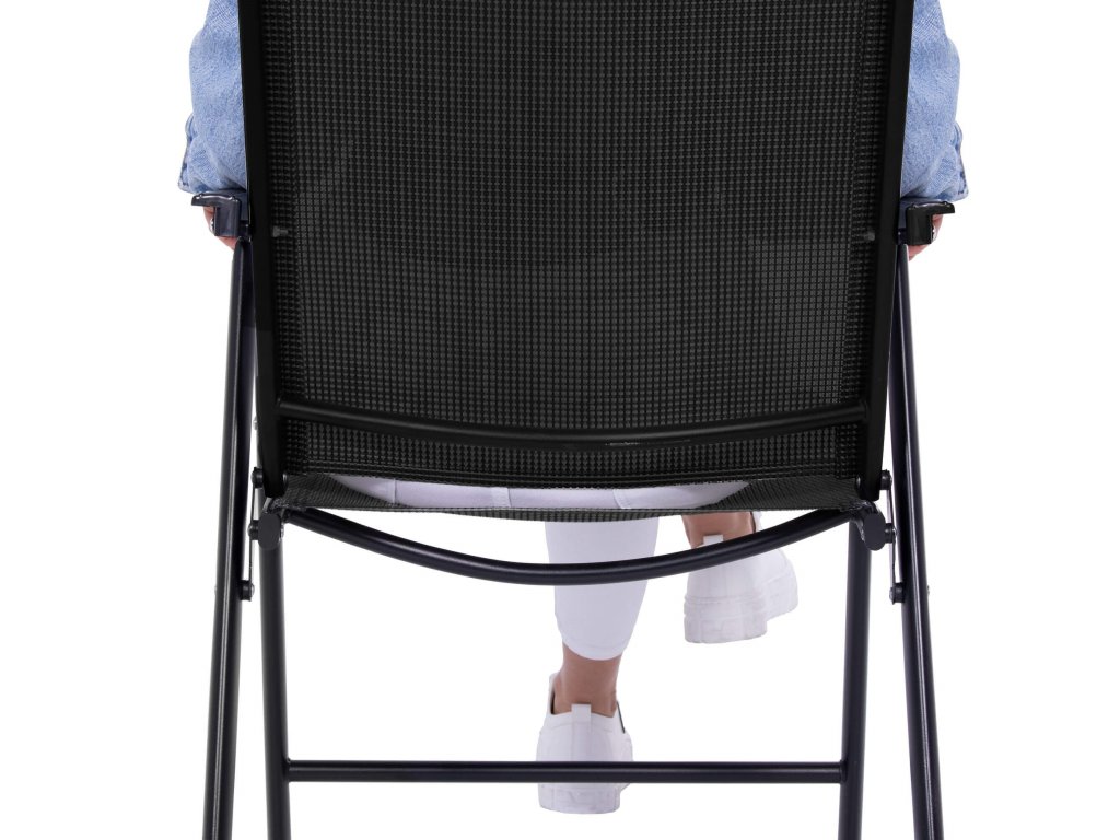 - Ívelt elemek a háttámla mögött és az ülés alatt kényelmes fogantyút alkotnak, amelyek megkönnyítik az összecsukott szék hordozását és kibontását
