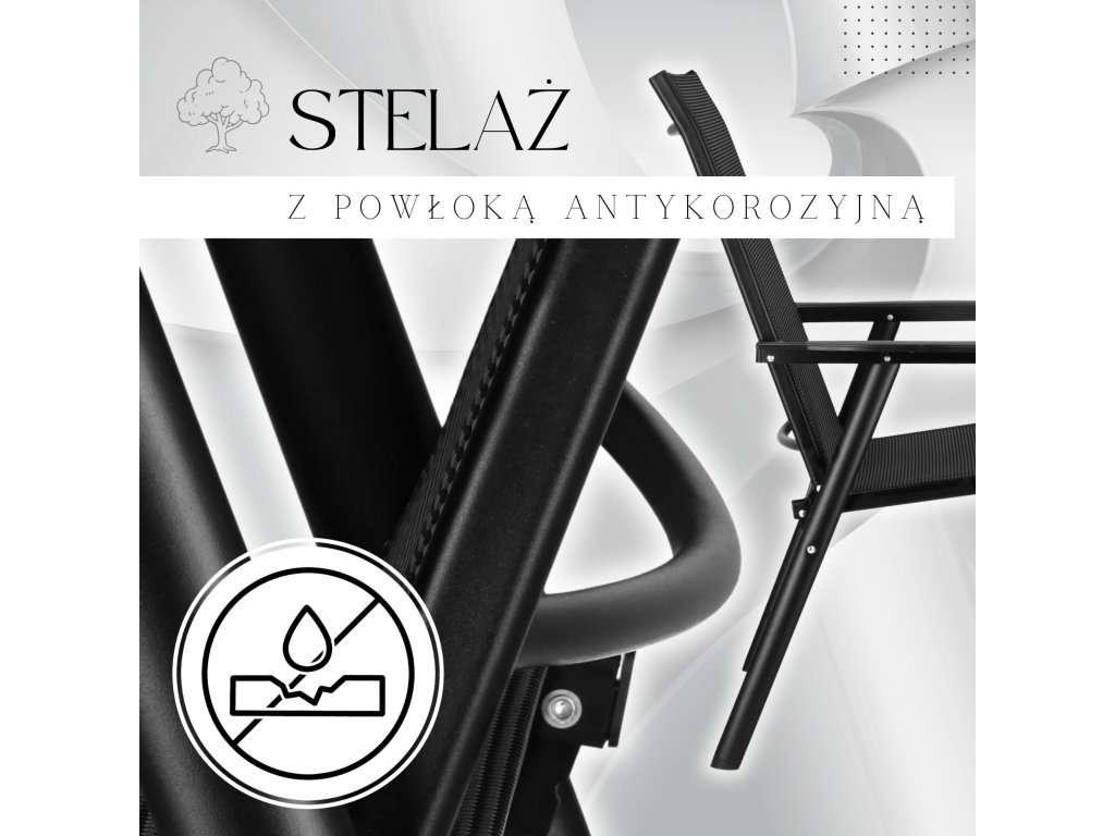 - Anyag: fém (szerkezet); 100% textilén; műanyag (karfák)