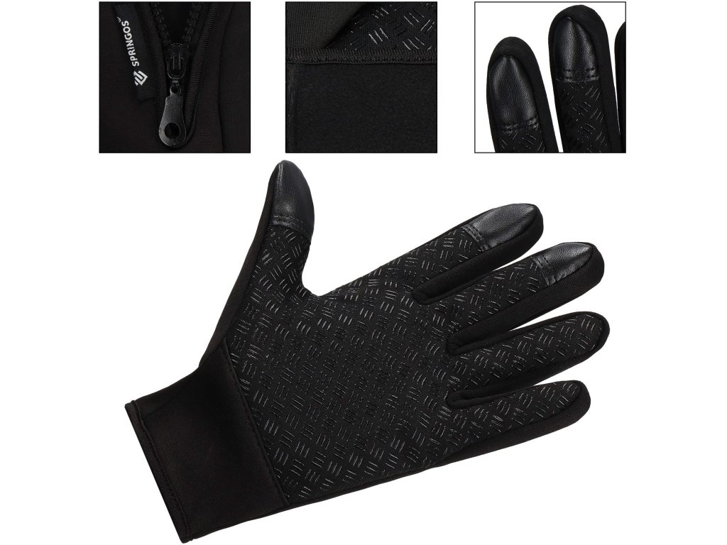- Előnyök: csúszásmentes bevonat a tenyér belső oldalán, érintőképernyős bevonat két ujjon, cipzár a kéznyílás szabályozásához