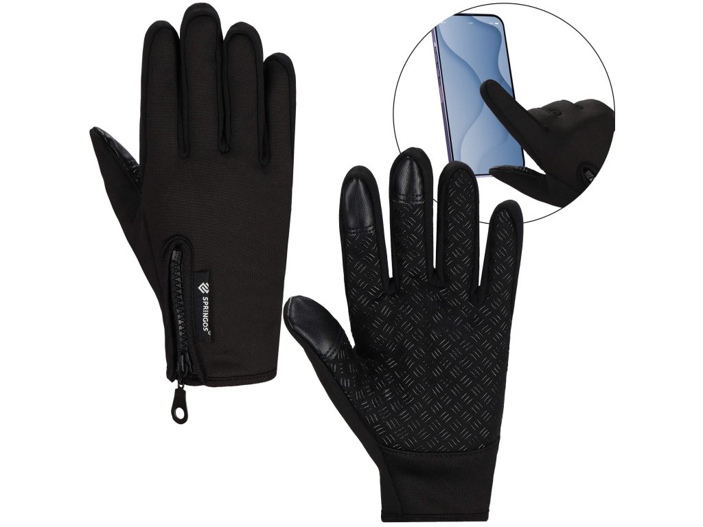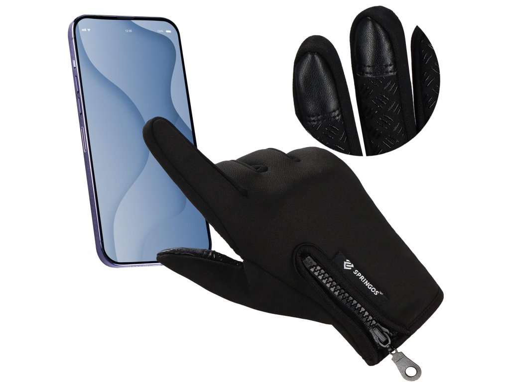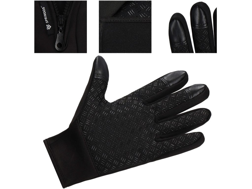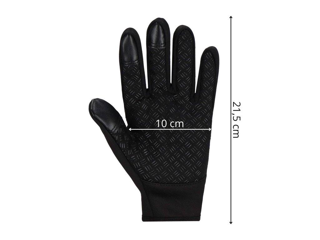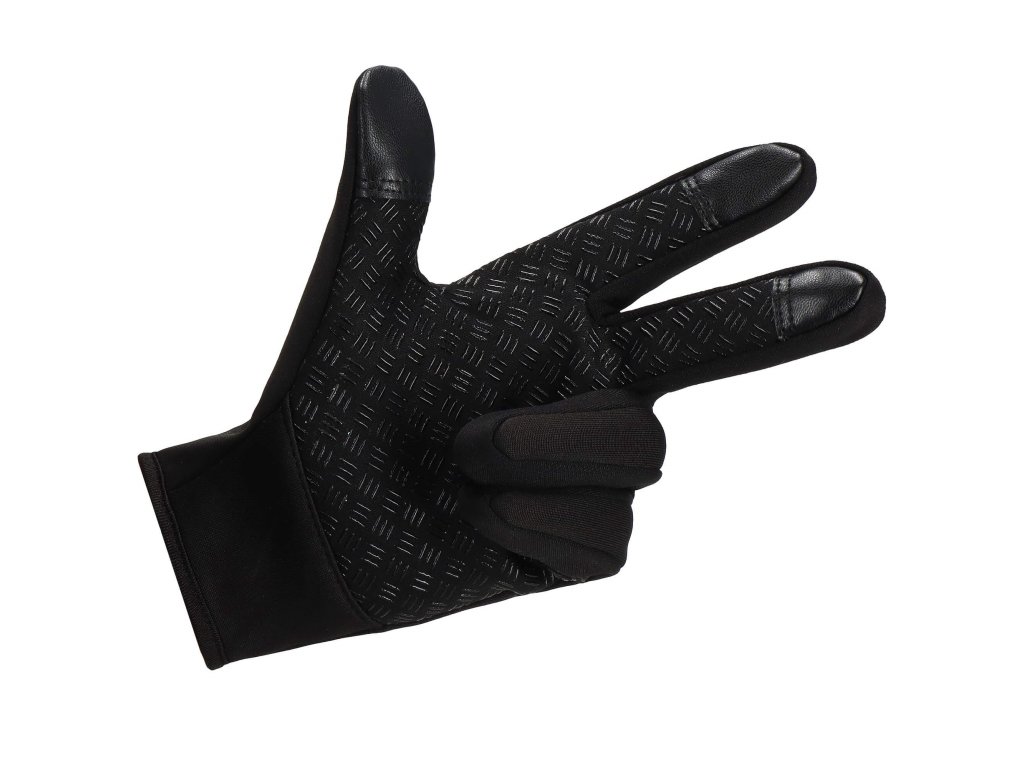 - Előnyök: csúszásgátló bevonat a tenyér belső oldalán, érintőképernyő kompatibilis bevonat két ujjon, cipzár a kéznyílás szabályozásához