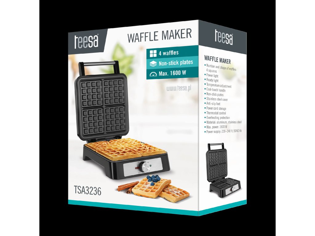 A Teesa 1600 W gofrisütő tökéletes eszköz a ropogós és aranybarna gofrik kedvelőinek. Gyors és egyszerű módot kínál ízletes reggelire, desszertre és bármilyen más alkalomra. A masszív szerkezetnek és az innovatív technikai megoldásoknak köszönhetően a Teesa gofrisütő hosszú évekig szolgál majd, és örömet okoz az egész családnak.