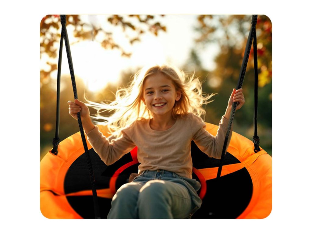 A fészek szélessége és a szövetborítás biztosítja, hogy a hinta ne csak jól nézzen ki, hanem nagyon kényelmes is legyen.