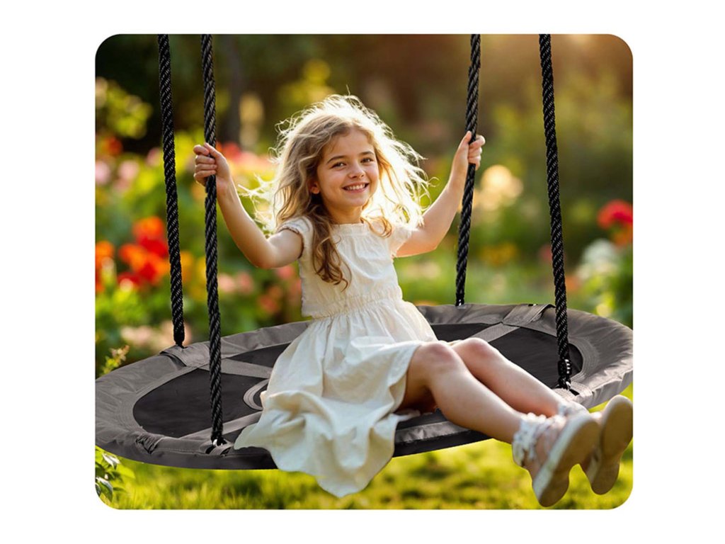 A fészek szélessége és az anyagbevonat biztosítja, hogy a hinta ne csak jól nézzen ki, hanem nagyon kényelmes is legyen.