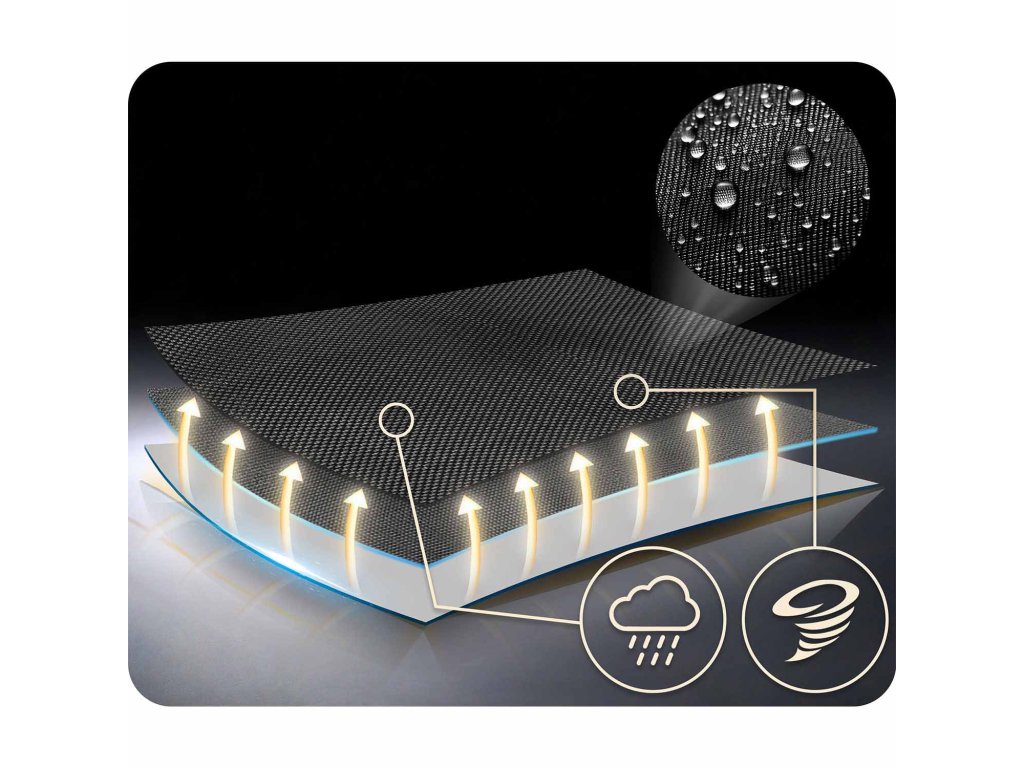 Az Oxford 600D poliészter, amelyből az ülés készült, vízálló és könnyen tisztítható.