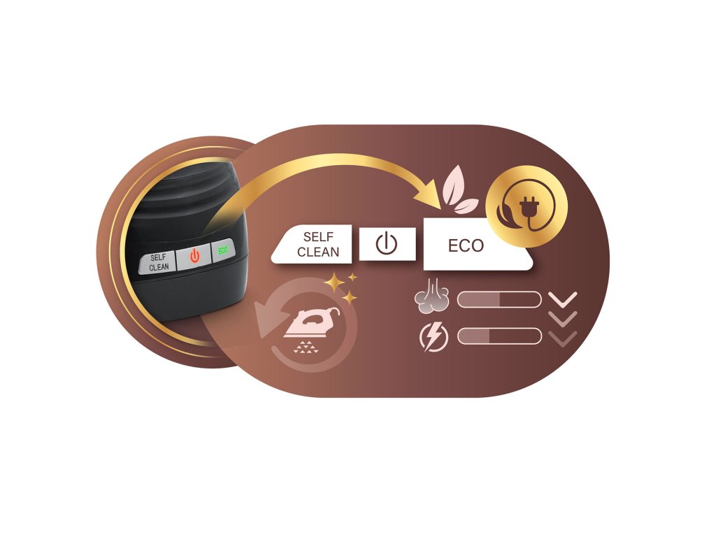 - Öntisztítás – az automatikus tisztítás megóvja a vasalót és meghosszabbítja annak élettartamát.