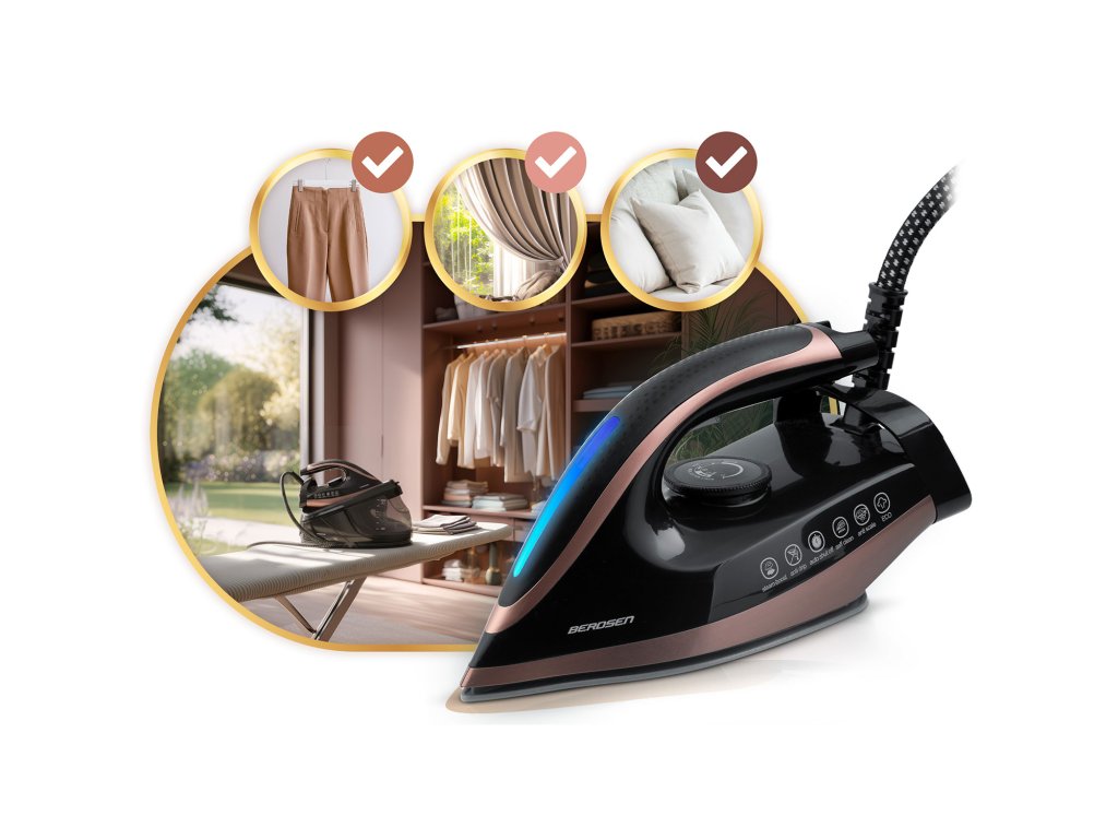 Egyetlen készülék – minden vasalásraAkár elegáns ingeket vasalsz a munkába, vastag függönyöket, lenvászon nadrágokat vagy ágyneműt – a Berdsen vasaló minden anyaggal megbirkózik. Égés, stressz és kompromisszumok nélkül.