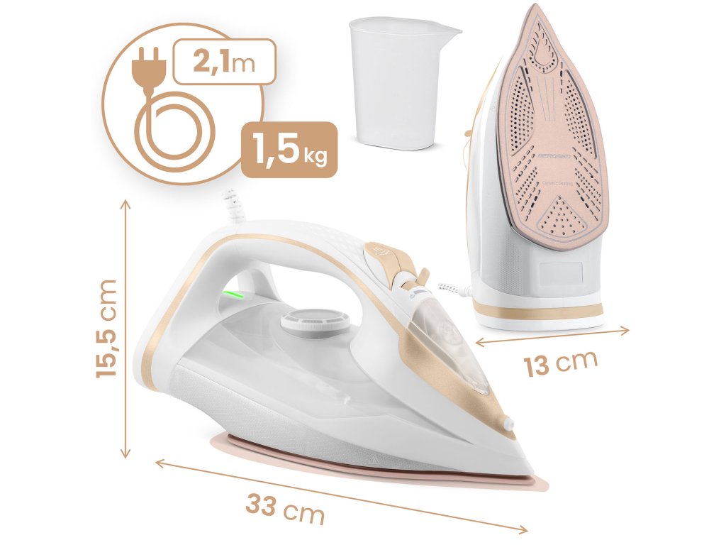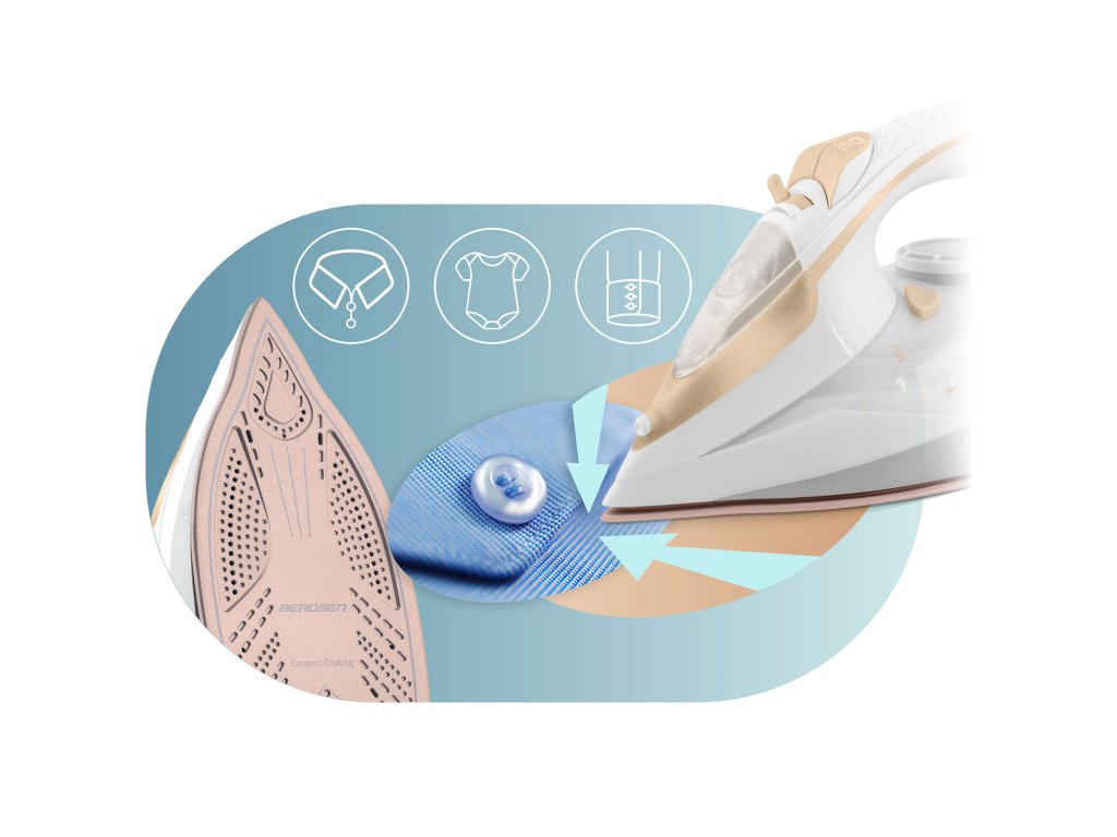 – a vasaló simán csúszik, ahol a pontosság a legfontosabb.A kerámia bevonat védi az anyagokat és garantálja a tökéletes csúszást.