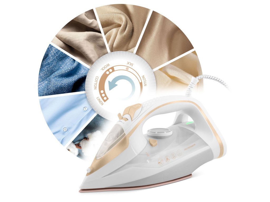 Ne kockáztass égetéssel vagy megvasalt ruhákkal. A Berdsen vasaló folyamatos hőmérséklet-szabályozással minden anyaghoz alkalmazkodik – a finom selyemtől a vastag vászonig.