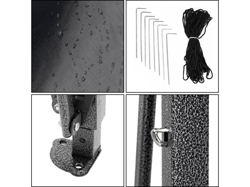 - Oldalfalak és tető anyaga: poliészter - Oxford 420D szövet, hidrofób bevonattal