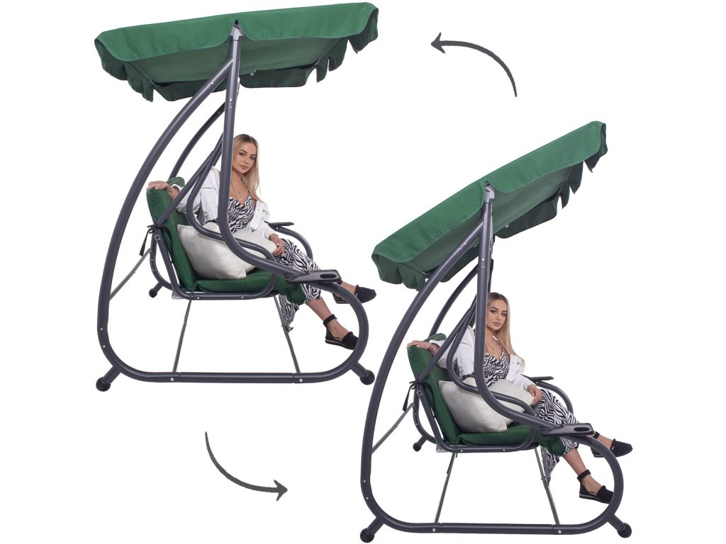 - Egyszerű hinta átalakítási rendszer ülő pozícióból fekvő pozícióba a rugós kör tüske segítségével, ami a hinta háttámla két oldalán található