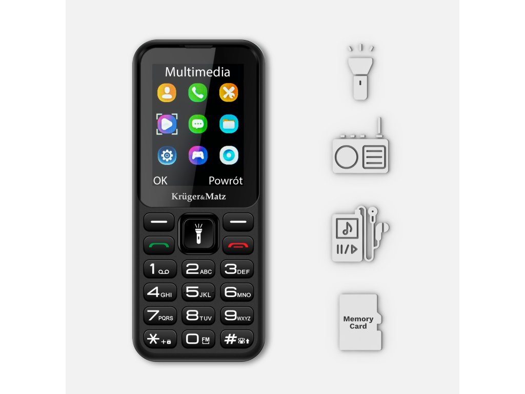 Olyan telefont keres, amely megbízható és egyben nagyon egyszerűen kezelhető A Kruger&Matz Simple 940 minden elvárását teljesíti! Az egyszerű használatra tervezve, ötvözi a mindennapi életet megkönnyítő legfontosabb funkciókat. Az áttekinthető kijelzőnek, az erős akkumulátornak és a hasznos kiegészítőknek köszönhetően ideális választás idősek és azok számára, akik értékelik az egyszerűséget és a funkcionalitást.