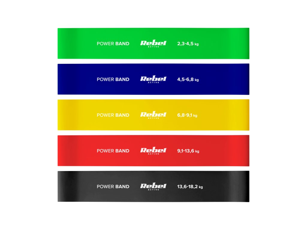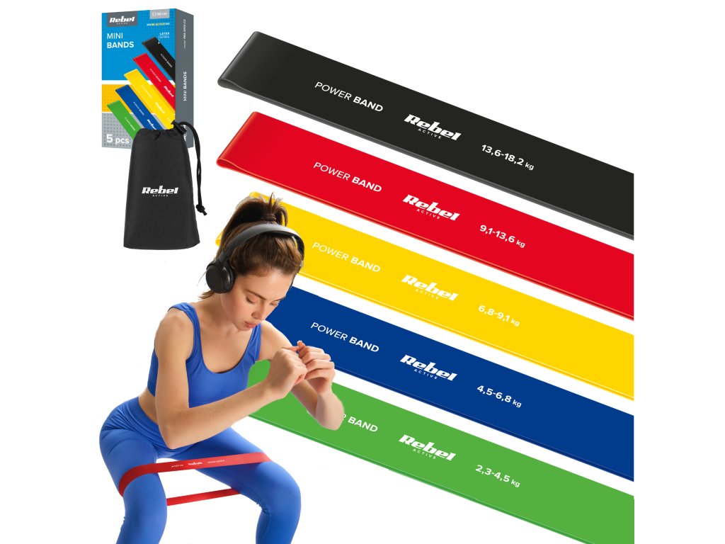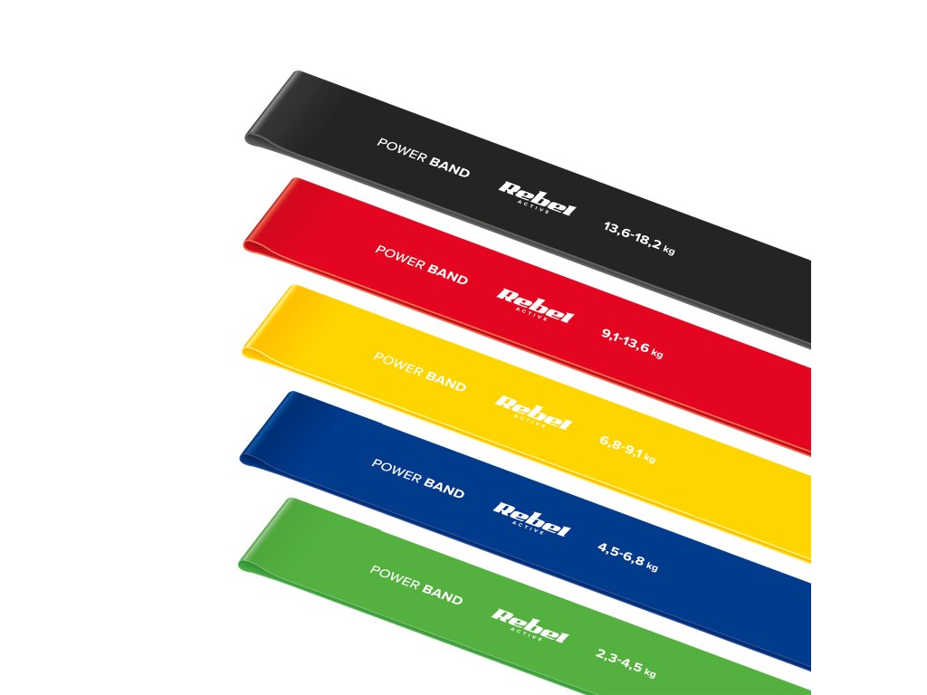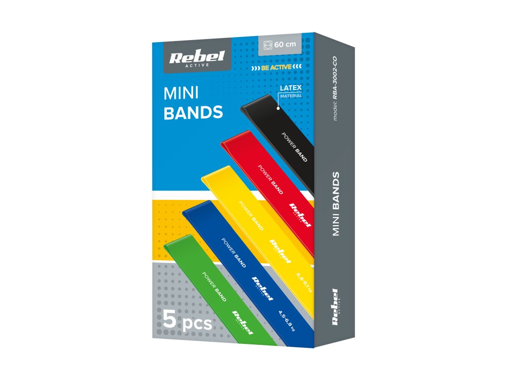 Gyakorlószalagok - Mini Band L, 2.3-18.2 kg, 5db , REBEL ACTIVE