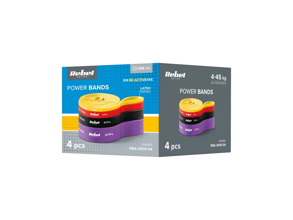 Gyakorlószalagok - Power Band PLs-2, 4-45 kg, 4 szalag, REBEL ACTIVE