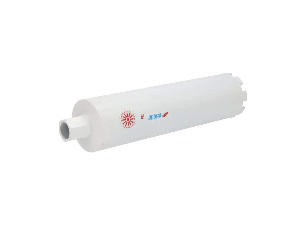 Fúrókar 107 mm átmérőjű és 400 mm hosszú. Alkalmas kemény anyagok, például beton, vasbeton, kő és tégla fúrásához. A gyémántfogak lézerrel vannak a koronához ragasztva, ami növeli a korona tartósságát. A korona hatszögletű fogantyúja megkönnyíti a rögzítést.