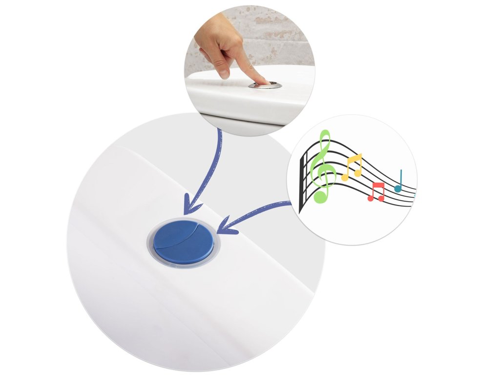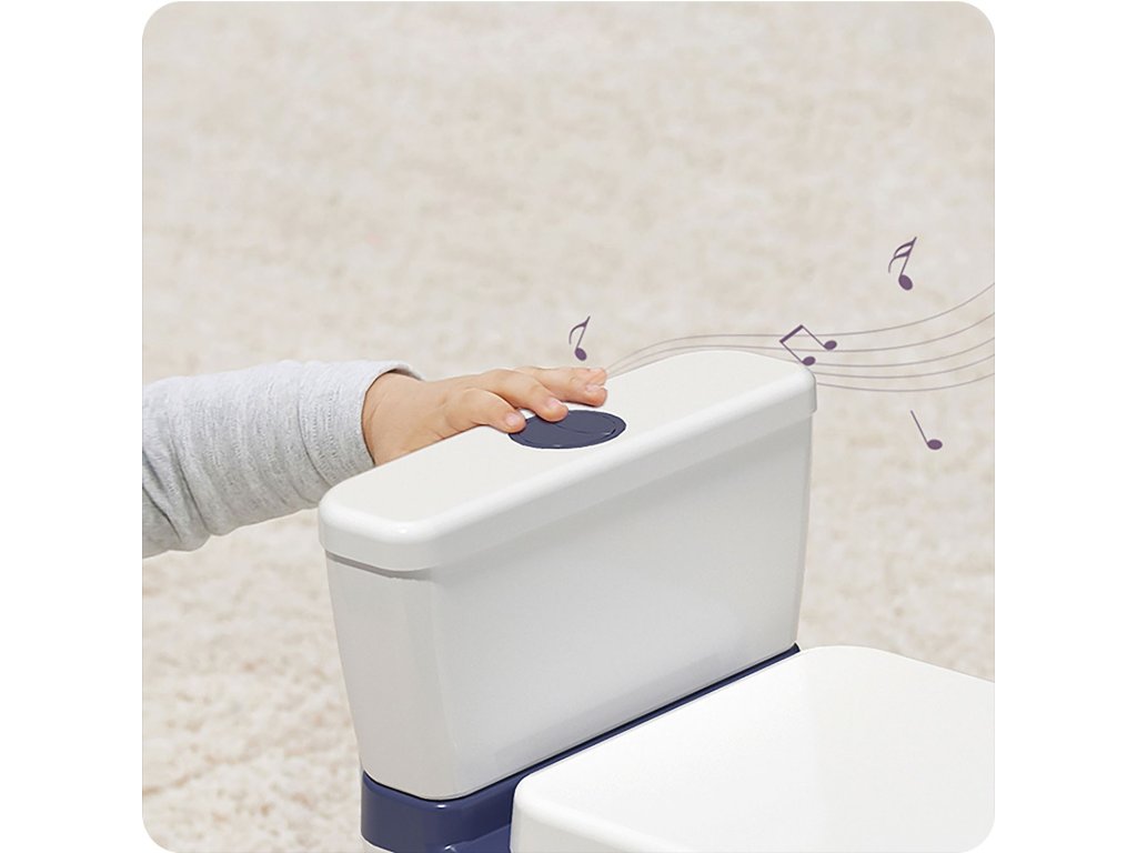 A WC-csésze dallamot játszik le, amelyet a gyermek az öblítő gomb megnyomásával indíthat el.
