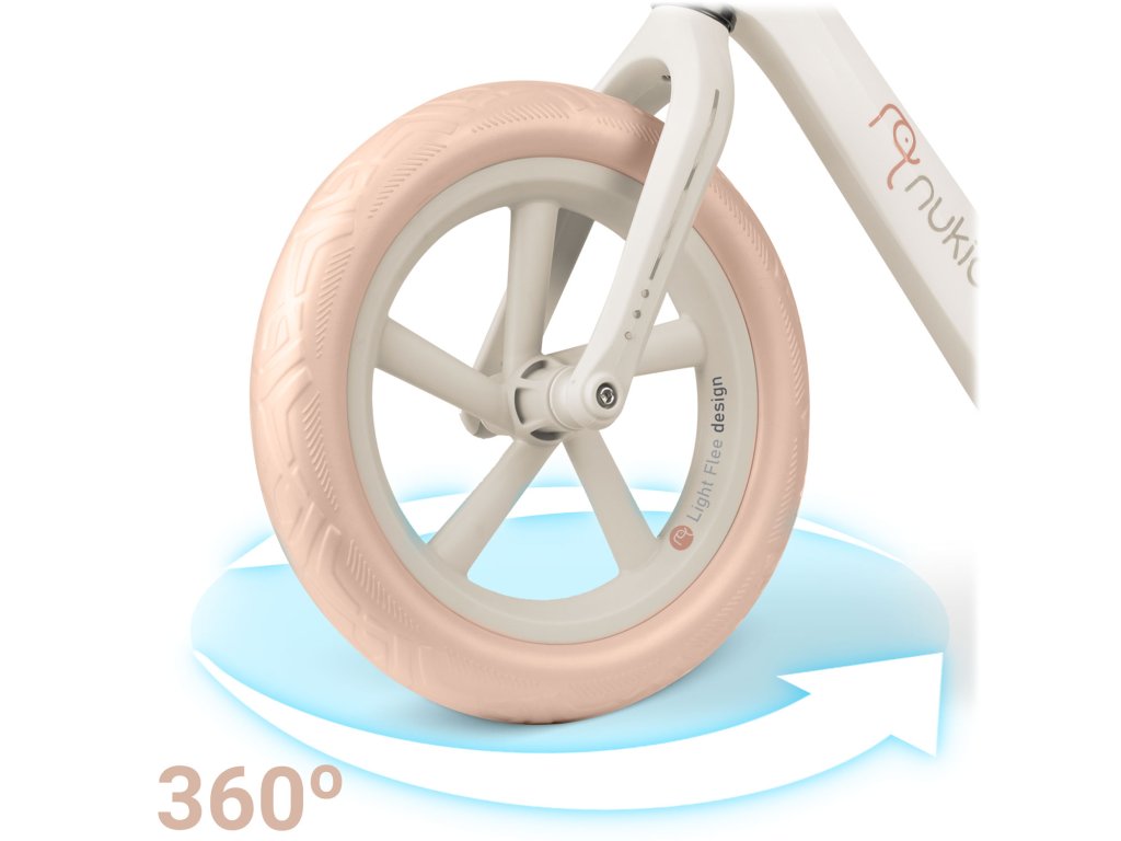 - a 360 fokos elforgatható kerekek lehetővé teszik, hogy a gyermek gyorsan és pontosan forduljon bármilyen irányba anélkül, hogy fel kellene emelnie az első kereket vagy nagyobb testmozgásokat kellene végeznie. Jobb irányítás: a nagyobb manőverezhetőség révén a gyermek jobban tudja irányítani az útvonalat, ami segít a