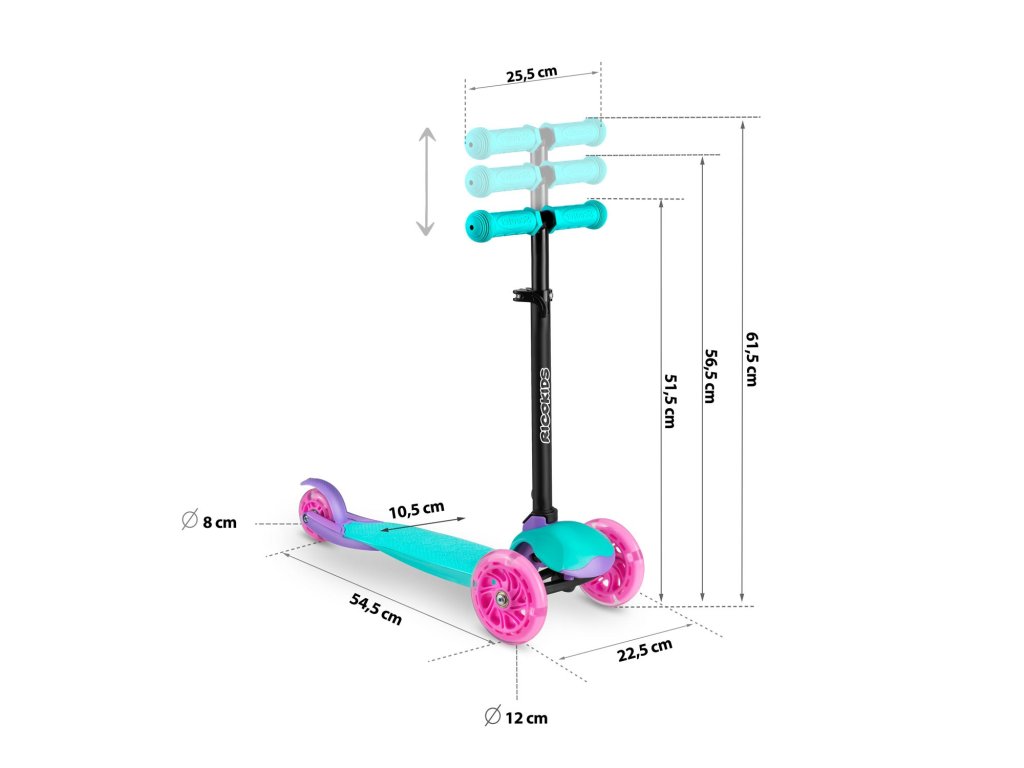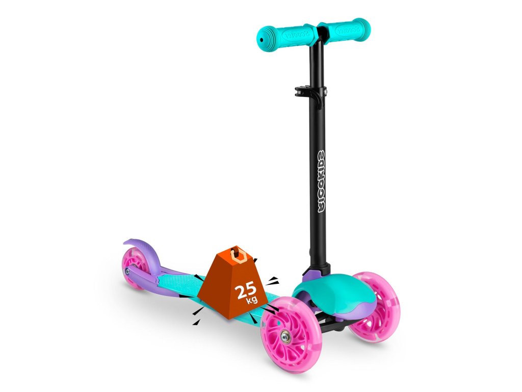 Gyerek robogó háromkerekű Loco - türkiz rózsaszínű