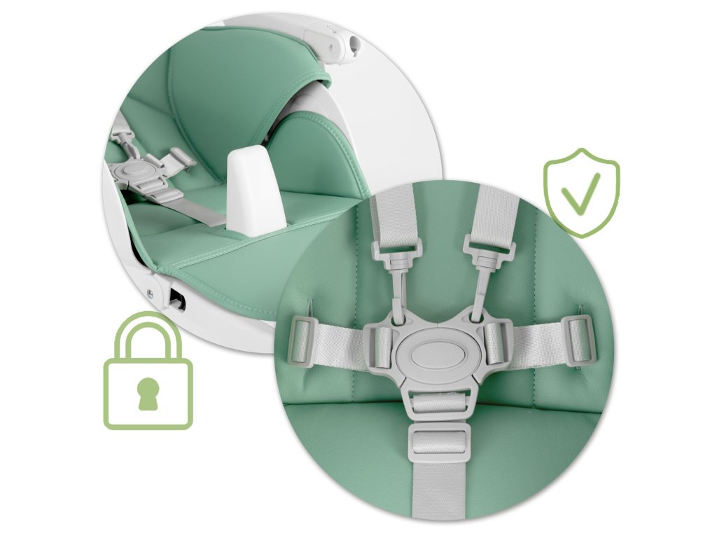 - Kiegészítő biztonság, amely megakadályozza, hogy a gyermek magától kieszen a székből. Teljesen szétszedhető, ha már nincs rá szükség.
