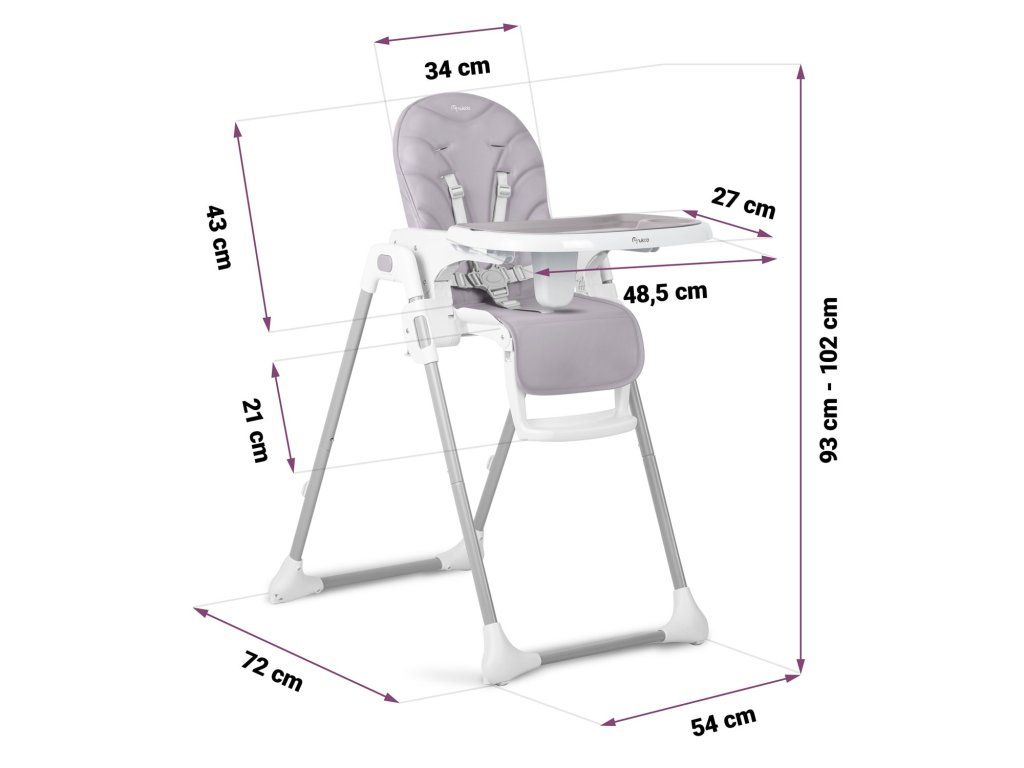 A szék lehetővé teszi a tálca gyermekétől való távolságának tetszőleges beállítását. Emellett bármikor teljesen szétszedhető.