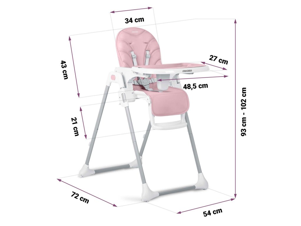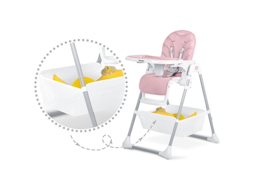 Azetetőszék lehetővé teszi, hogy szabadon állítsa be a tálca távolságát a gyermektől .Emellett bármikor teljesen szétszedhető.