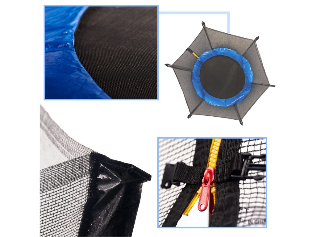 Pre bezpečnosť má trampolína pružinový kryt a bezpečnostnú sieť - deti sa budú môcť hrať v bezpečnom prostredí. Dodáva sa s pružnou podložkou, ktorá umožní ľahké skákanie, ale zabezpečí aj mäkké pristátie. Okrem toho je jej maximálna nosnosť 150 kilogramov, čo umožňuje skákanie nielen deťom, ale aj dospelým.
