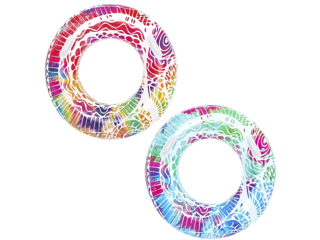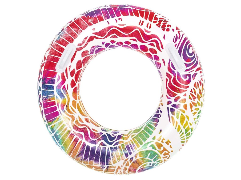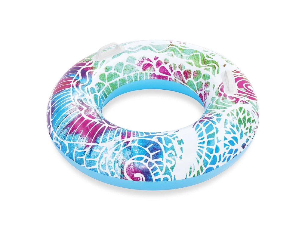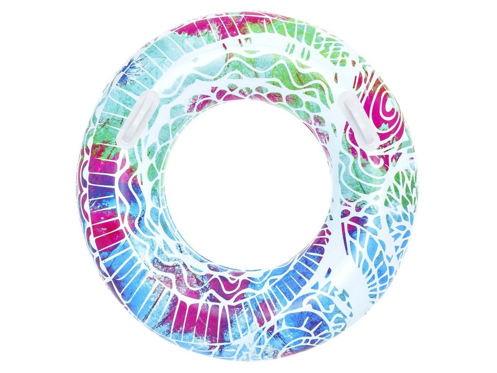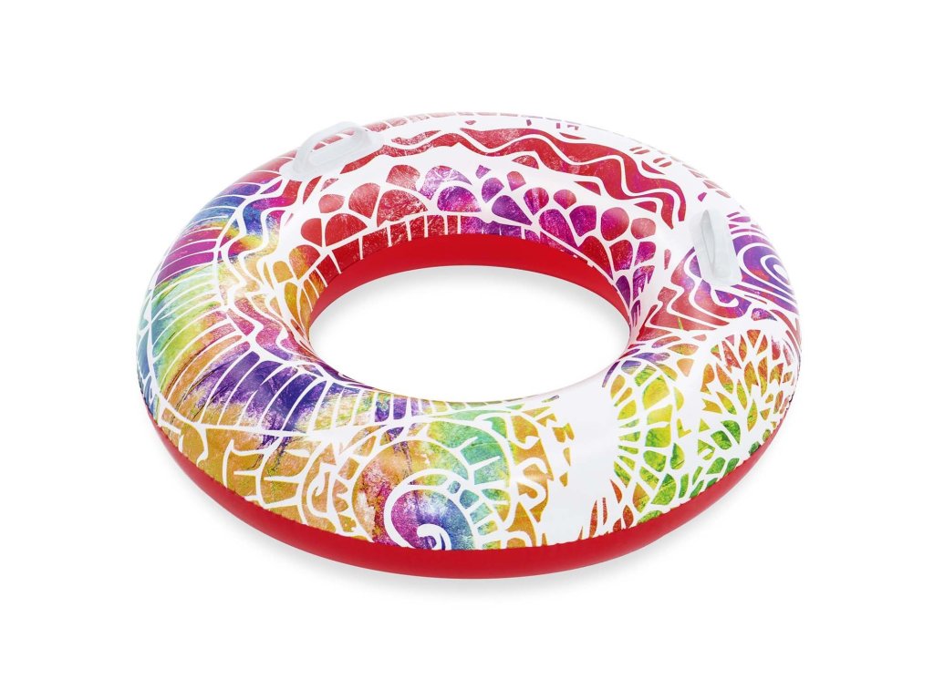 Úszógumi 91 cm BESTWAY 36084 NYÁRI SLÁGER A legklasszikusabb felfújható strandkiegészítő új köntösben! A gumi nagyon praktikus, kényelmes, és nagyszerűen mutat a strandon. Tartós PVC-ből készült, amely ellenáll a napfénynek és a sós víznek. Erős fogantyúk! Két masszív fogantyú biztosít nagyobb stabilitást, stresszmentessé téve a pihenést, és különösen praktikusak a gumi szállításakor. Főbb jellemzők: egyedi minta nagy átmérő két masszív fogantyú Műszaki adatok: Méretek: átm. 91 cm Anyag: PVC Súly: 0,35 kg Ajánlott életkor: 10 éves kortólKiegészítő paraméterek