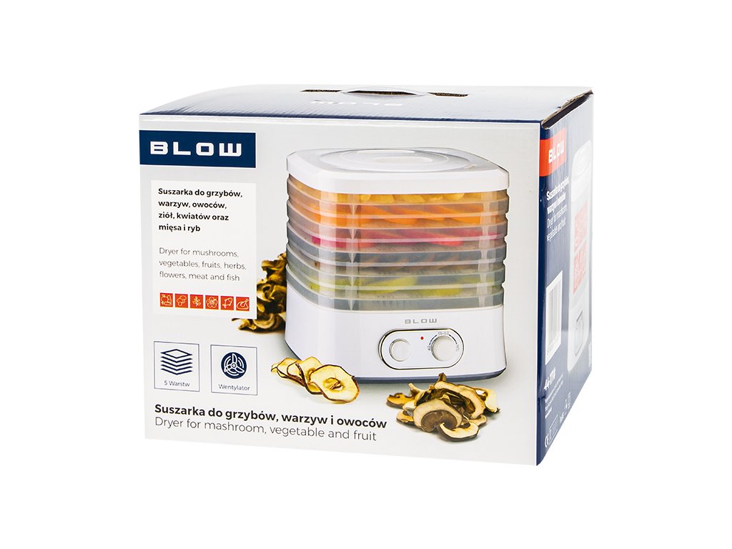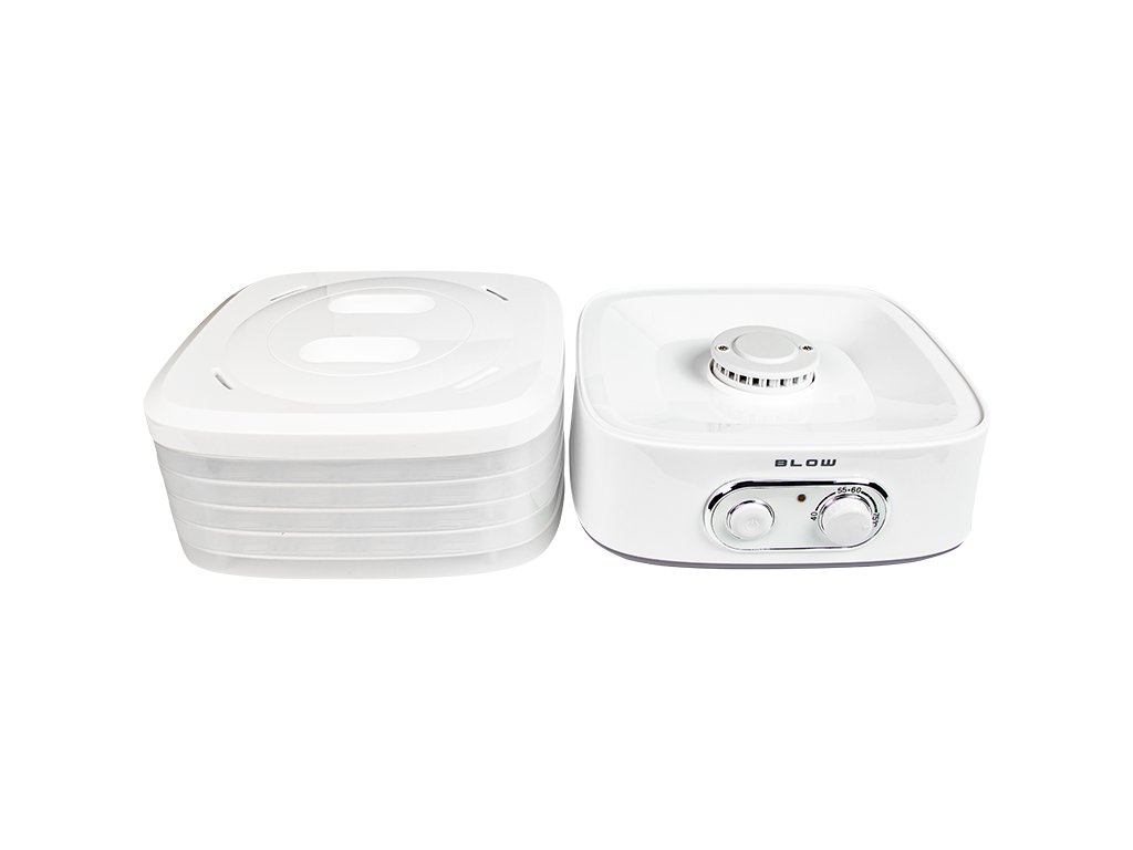 A szárító vizuálisan vonzó és modern dizájnnal rendelkezik. Fehér burkolatú, téglalap alakú, és 5 átlátszó szintje van, amelyek lehetővé teszik a nagyszámú szelet egyenletes elosztását. Minden tálca külön-külön kivehető, így könnyen tölthető, eltávolítható és tisztítható. Optimális méretének és könnyű súlyának köszönhetően a szárítót könnyű tárolni, szállítani vagy szállítani.