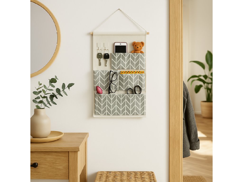 - A szervező 5 kényelmes zsebet és 2 kampót tartalmaz